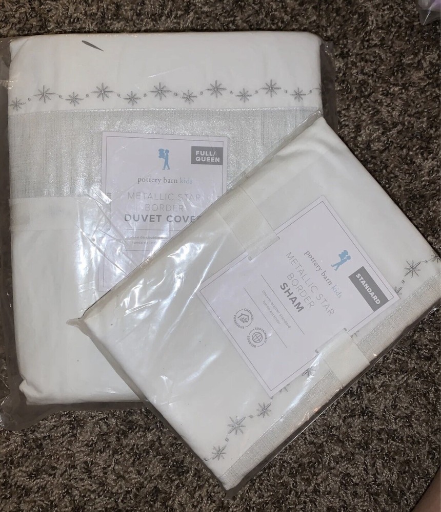 Pottery Barn Kids Metallic Star Border Full/Queen Duvet 1 Sham Christmas New. Condition is "New with tags". Shipped with USPS Priority Mail....