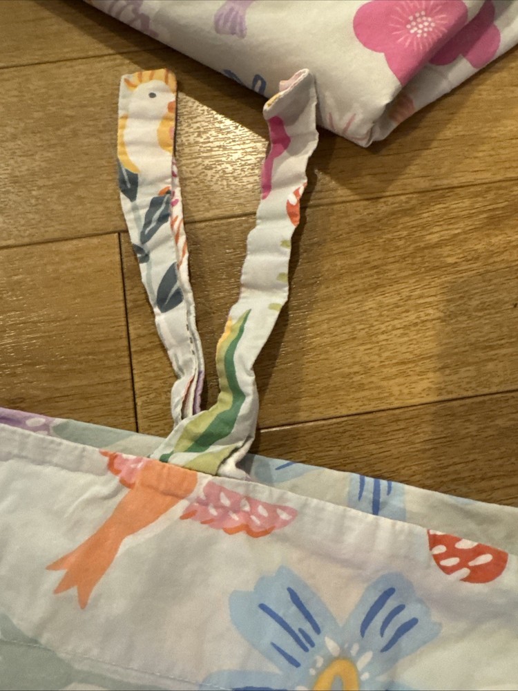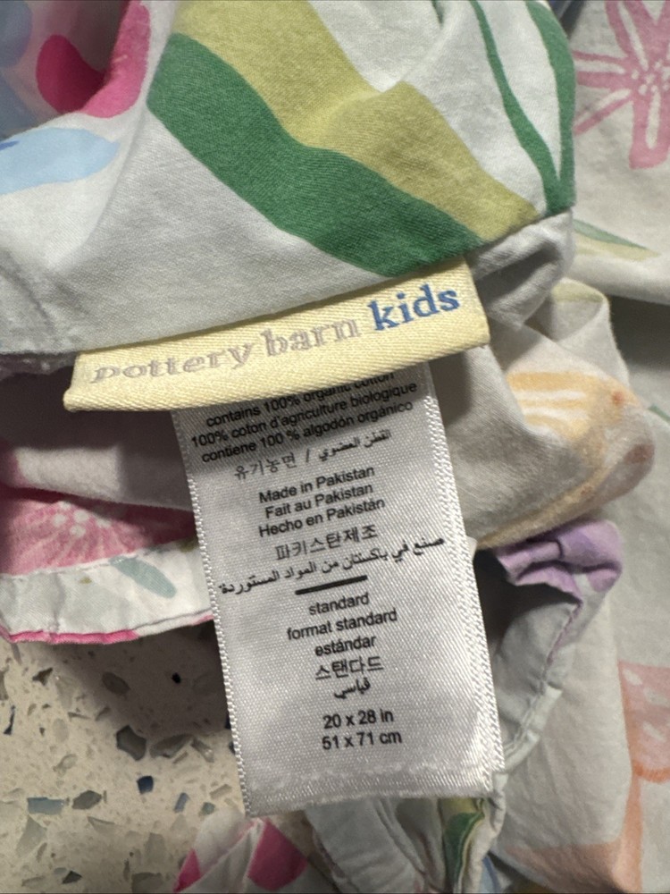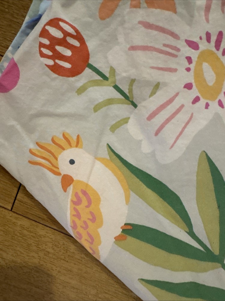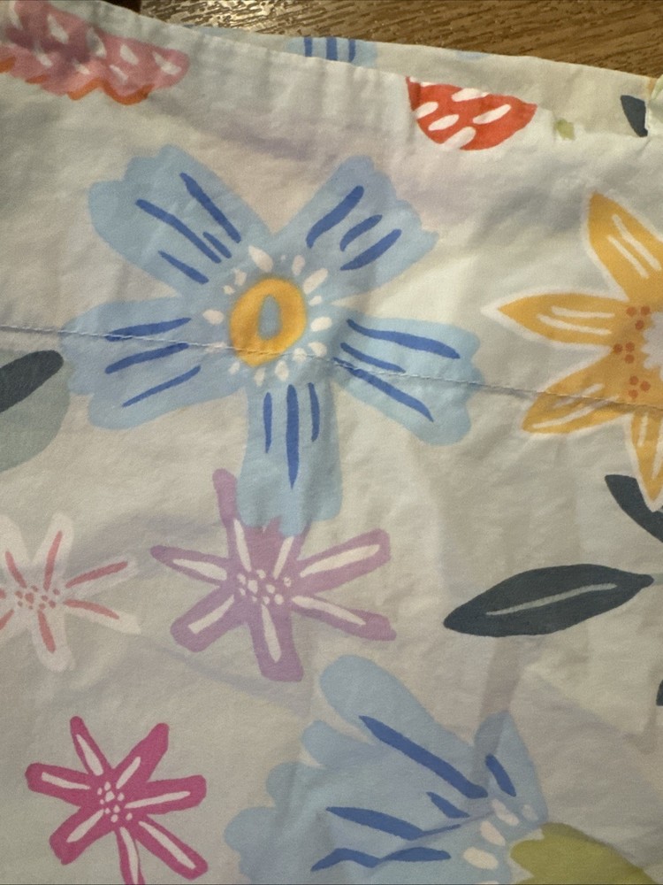 Add a touch of elegance to your child's bedroom with this beautiful Pottery Barn Kids Naomi Floral Duvet Cover Set. The set includes a queen-sized duvet cover and two standard shams, all adorned with a lovely blue floral pattern that will surely captivate your little one's attention. Made from 100% cotton and organic cotton materials, this set provides a soft and comfortable sleeping experience for your child. Machine washable for easy care, this Duvet Cover Set also features care instructions for added convenience. Perfect for any bedroom setting, this Pottery Barn Naomi set is a must-have for any child who loves birds and flowers. Adorable. NO flaws.