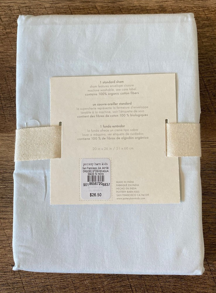 Pottery Barn Kids Organic Decorator Standard Sham Light Blue Green NEW