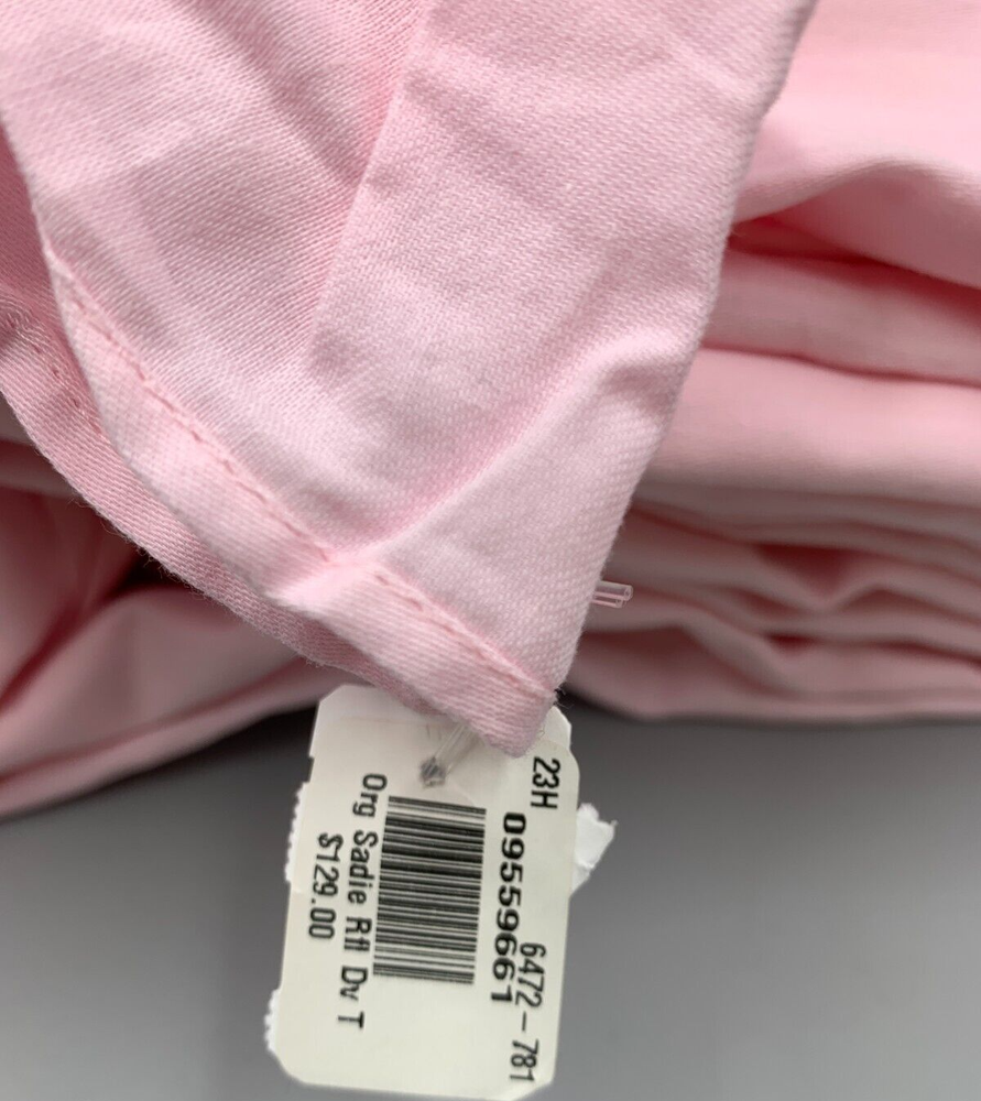 Pottery Barn Kids Organic Sadie Ruffle Duvet Cover Item is brand new Auction includes: 1 duvet cover Attention: the last two pictures are of the white sadie duvet, but shows the design that is on the duvet. DIMENSIONS: Duvet Cover Twin : 68" wide x 86" long Full/Queen: 88" wide x 90" long CARE: Wash bedding before first use. Machine wash in warm water; gentle cycle. Use only non-chlorine bleach, if needed. Tumble dry on low heat. Warm iron as needed.