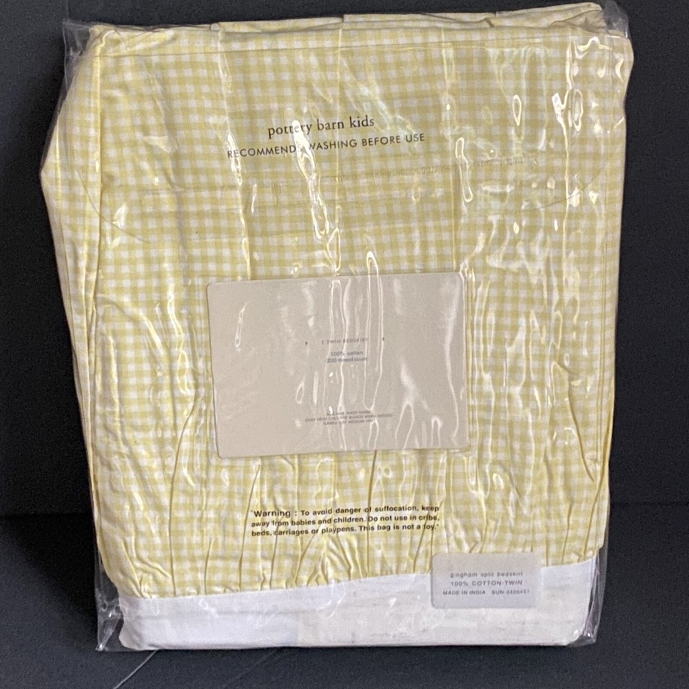 Pottery Barn Kids PBK Gingham Check Split Bed Skirt Dust Ruffle TWIN with 14" drop Yellow Bright, bedskirt is much brighter than pictures portray...