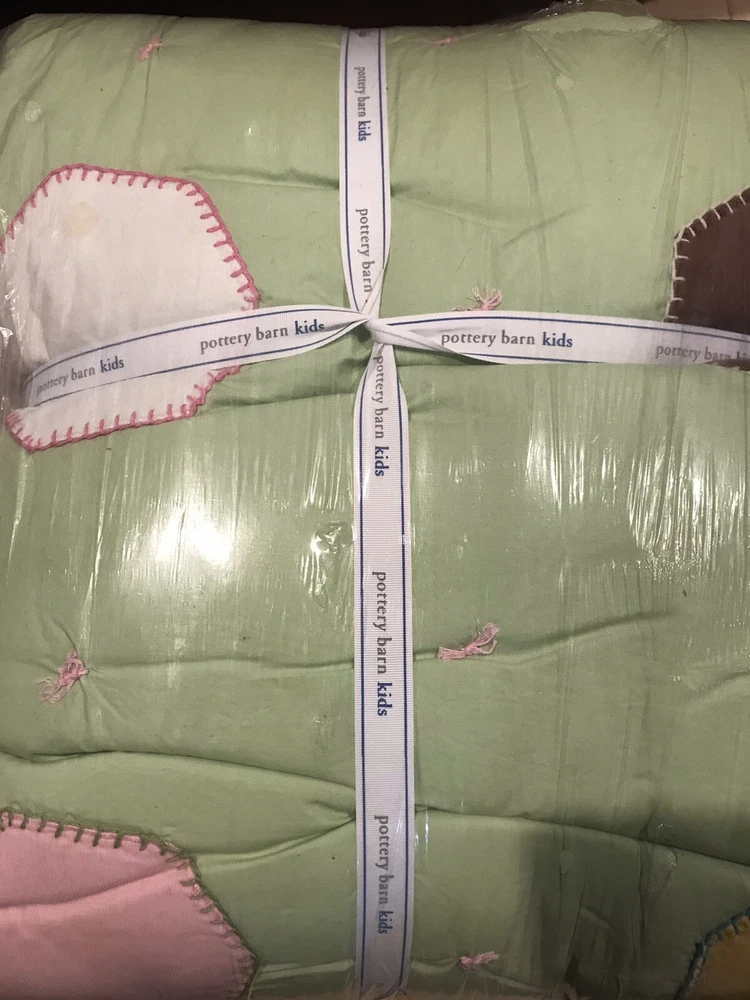 Pottery Barn Kids Brand new Paige Patched work Dot quilt Full/Queen size 86"x 86" and two standard quilted shams Quilt is made of 100% cotton exclusive of decoration. The filling is made of 100% polyester. This quilt is hand tufted with decorative stitching and appliqués. This quilt is machine washable. The paige dots pattern is only on the one side. The other side is green. The faded washed uneven colors effects is part of the pattern. We accept payments via PayPal from registered , verified PayPal accounts. Payment must be received within 72 hours of the auction's close to avoid an "Unpaid Item" report. We accept returns if and only if (1) We made a obvious, indisputable error in a product description ( Example: We said "Blue Size 4" but the product is "Red Size 8"), or (2) We mailed the wrong item altogether (Example: The auction was for a "Twin Size Aimee Quilt" and we accidentally send a "Queen Size Olivia Sheet Set.") If you find your purchase was not as you expected, please contact us before leaving feedback. Visit Our eBay Store for More Great Deals All items pass through our home—smoke free, asbestos free and (apart from a goldfish and two well-behaved guinea pigs in a cage downstairs) pet free. Powered by eBay Turbo Lister Powered by eBay Turbo Lister Powered by eBay Turbo Lister The free listing tool. List your items fast and easy and manage your active items.