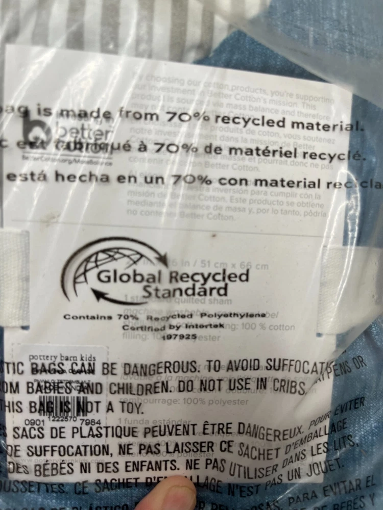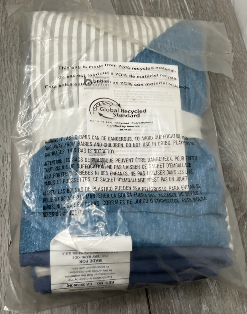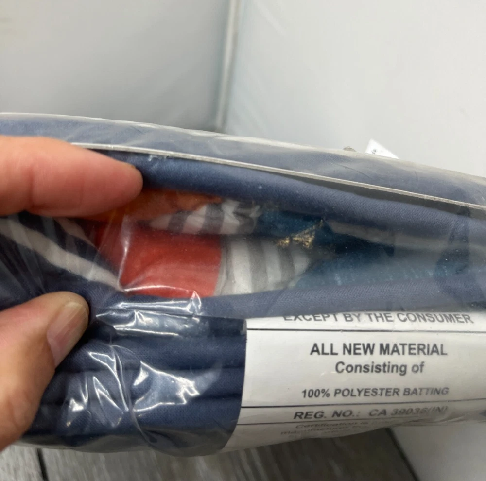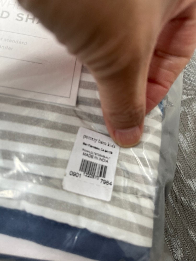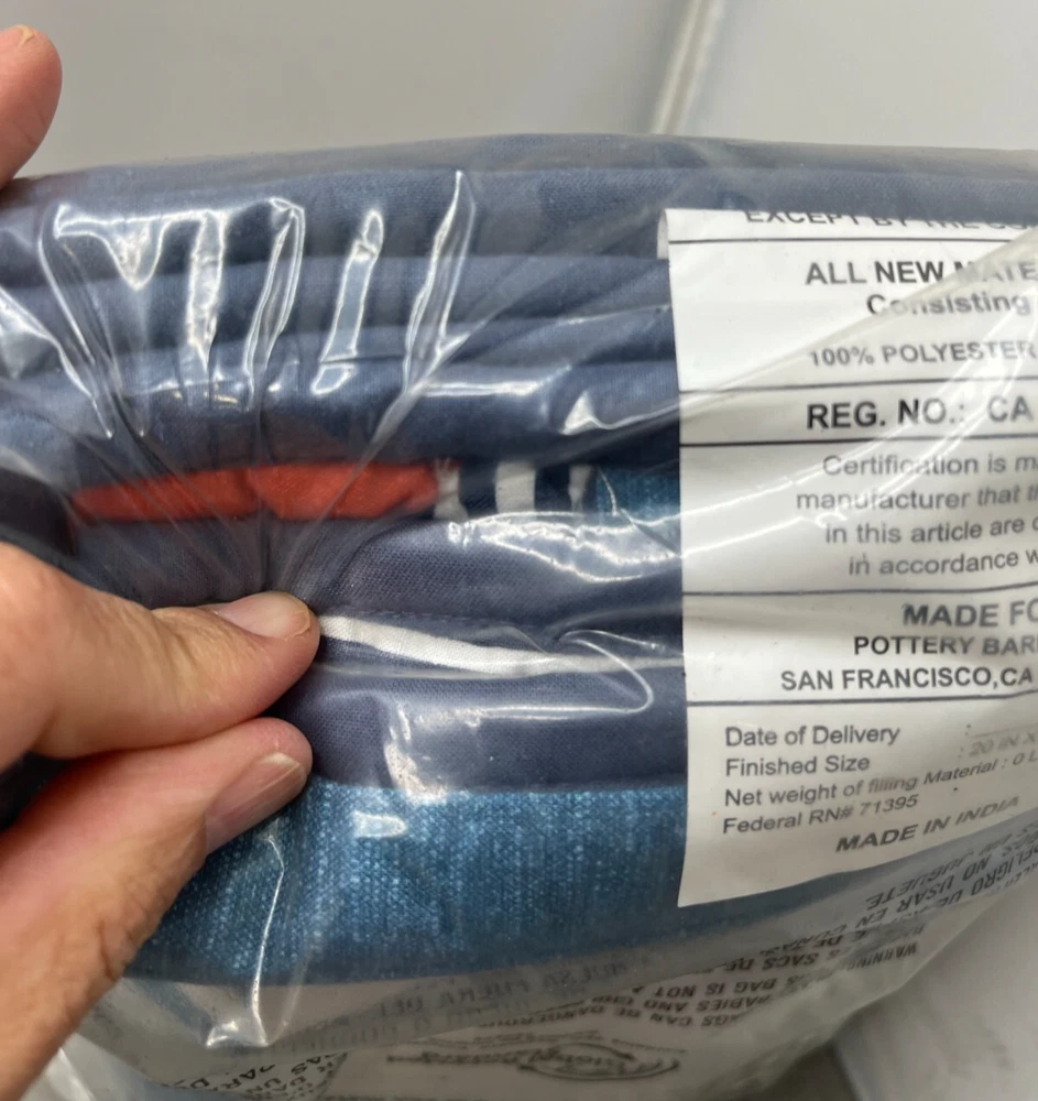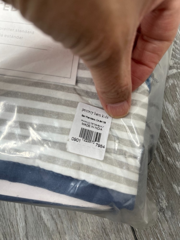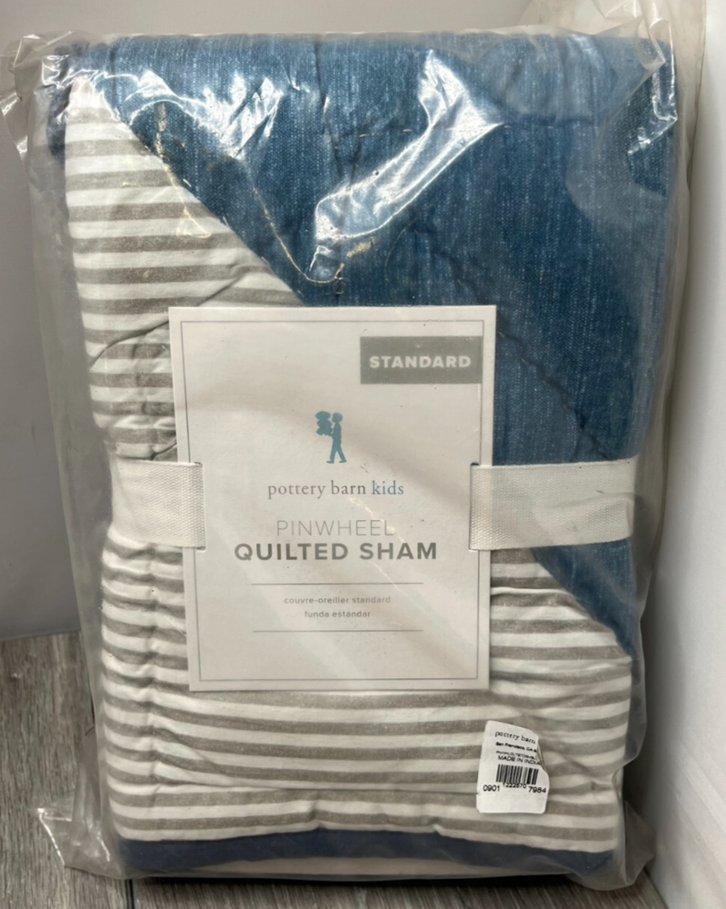 This sale is for ONE Pillow Sham New in plastic package, outer package may have some dust/dirt and shelf wear. NOTE: Cover pic has stock pic of sham for Representation ONLY. Color may vary from this depiction. Sale is for 1 Pillow Sham ONLY. Please see the pictures for more details on the condition and the content(s) of this listing. The photos are the actual item(s) you will receive. Unless there are multiple quantities, then there can be slight variations from the item(s) pictured. (nothing more than what is displayed) Please verify fit/usage and ask questions before purchase. Brand: Pottery Barn Kids Product: Pillow Sham MPN: 1222570 Material: Cotton Dimensions: 20" L x 26" W Size: Standard Pattern: Reversible Pinwheel Design/Striped Color: Blue Multicolor Qty: 1 Pillow Sham More Info: Reversible Pinwheel Design/Striped Pillow Sham. Machine Washable. NOTE: Cover pic has stock pic of sham for Representation ONLY. Color may vary from this depiction. Sale is for 1 Pillow Sham ONLY. If there are any questions, please ask them before the purchase. Our handling time is 2 business days and we use a variety of shipping carriers. Please contact us if you have specific needs on shipment before purchase. We only use eBay labels, so make sure that your address is correct before purchasing. Our Goal is to provide you with a happy transaction, please kindly contact us if there are concerns, so we know how to best provide customer service!