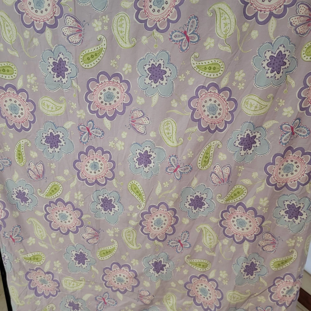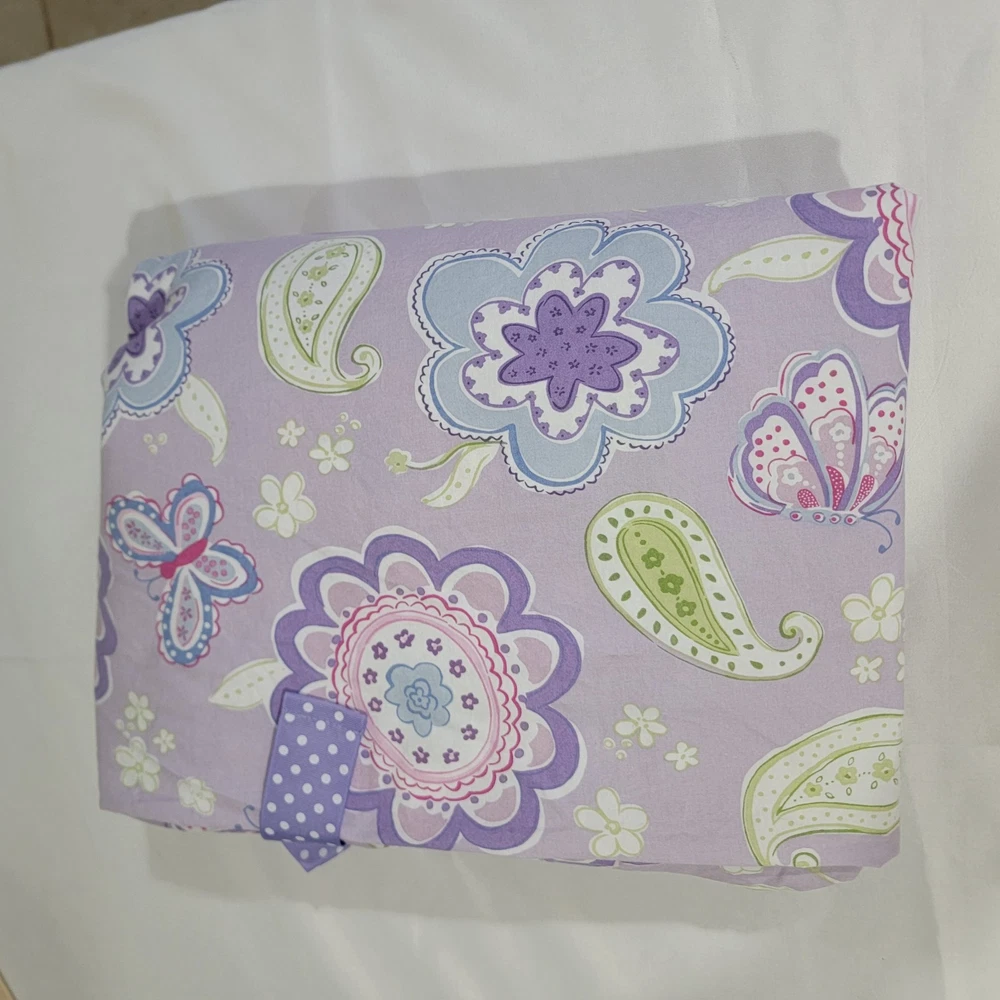 Adorn your little one's bed with the charming elegance of the Pottery Barn Kids Purple Butterfly Samantha Full Queen Duvet Cover. This traditional-style cover features a delightful butterfly pattern named Samantha that is sure to add a touch of whimsy to any bedroom. Designed for durability and comfort, it's made from 100% cotton, ensuring a soft and breathable feel. The rectangular duvet cover measures Full/Queen size, making it a perfect fit for most kids' beds. It's easy to maintain with machine washable convenience and comes with one sham for a coordinated look. The button closure ensures a secure and neat appearance, keeping the bedding looking freshly made all day long.