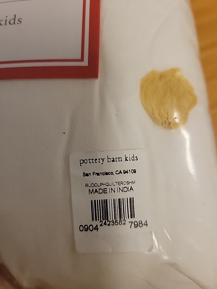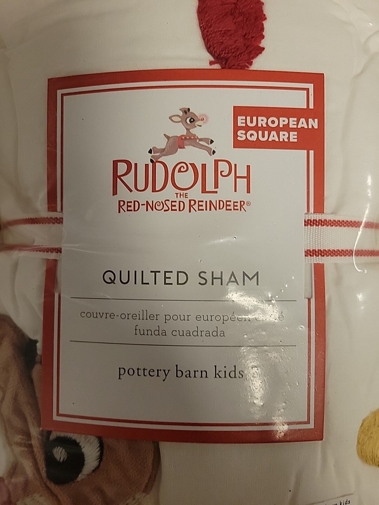 Add a touch of vintage charm to your child's bedroom with this Pottery Barn Kids RUDOLPH Euro Sham. Featuring a cute reindeer pattern and vibrant multicolor design, this 100% cotton pillow sham is sure to delight your little one. The envelope with tie closure ensures a secure fit and easy installation. Measuring 26 inches in both length and width, this square sham is perfect for any Euro-sized pillow. Made in India and part of the Rudolph character family, this sham is a must-have for any child who loves the classic holiday tale.