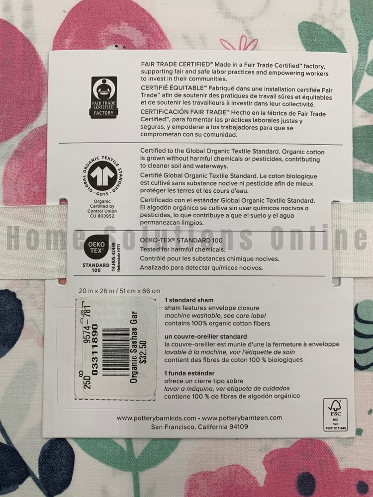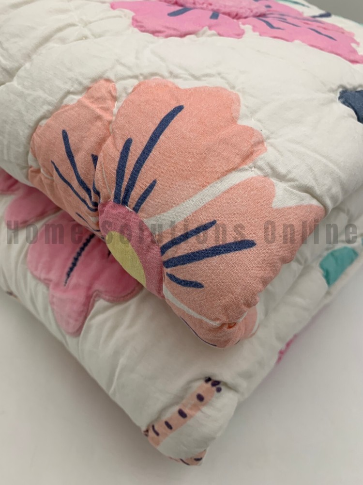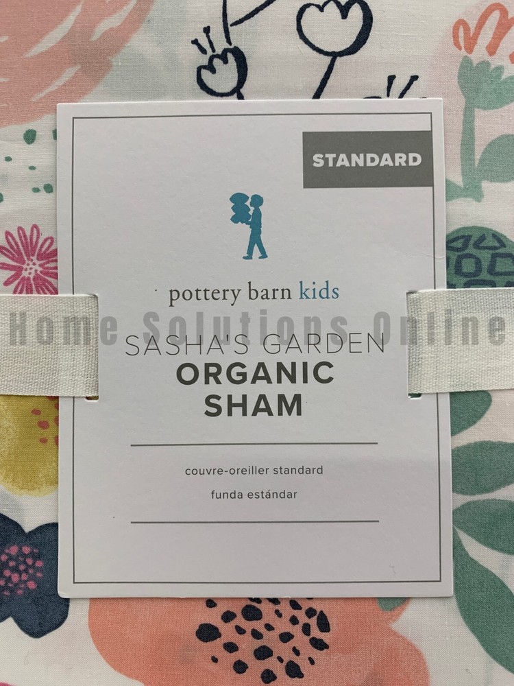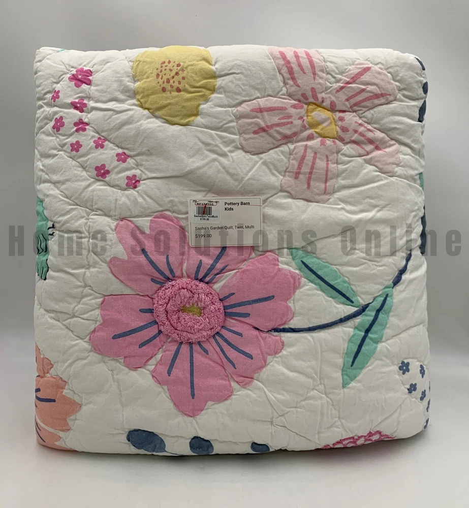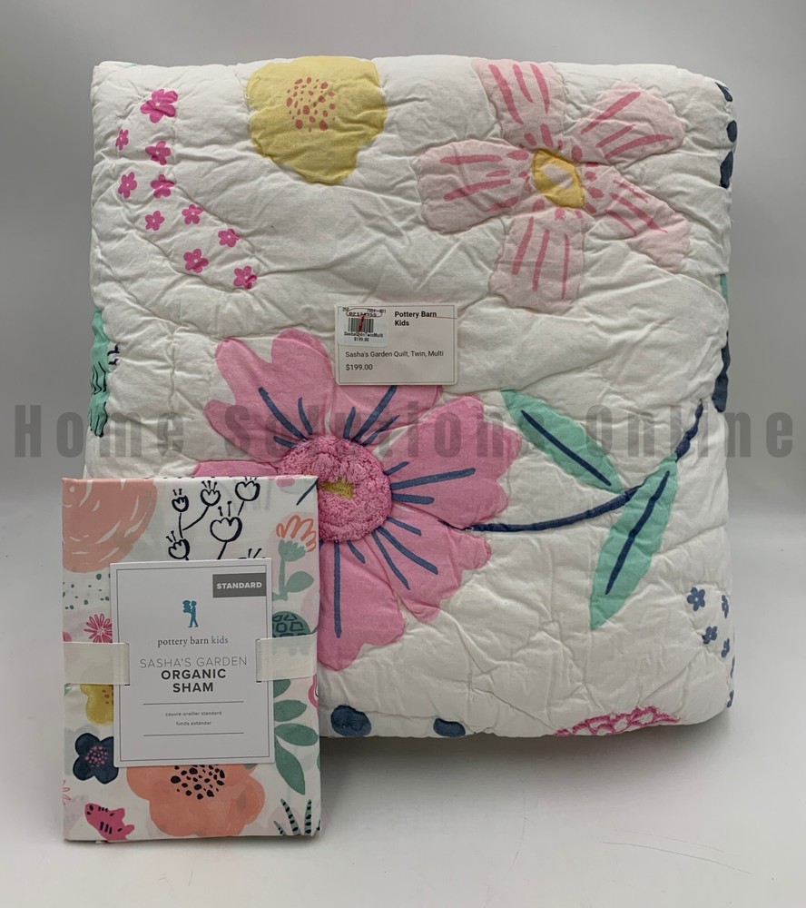 Pottery Barn Kids Sasha's Garden Twin Quilt 1 Standard Sham Items are brand new Auction includes: 1 twin quilt and 1 standard sham DIMENSIONS: Quilt Toddler: 36" wide x 50" long Twin : 68" wide x 86" long Full/Queen: 86" square Sham Standard : 26" wide x 20" high Euro: 26" square CARE: Large capacity washer recommended. Machine wash cold water, gentle cycle. Use only non-chlorine bleach, if needed. Tumble dry on low heat; remove promptly. Warm iron as needed. Can be dry-cleaned.