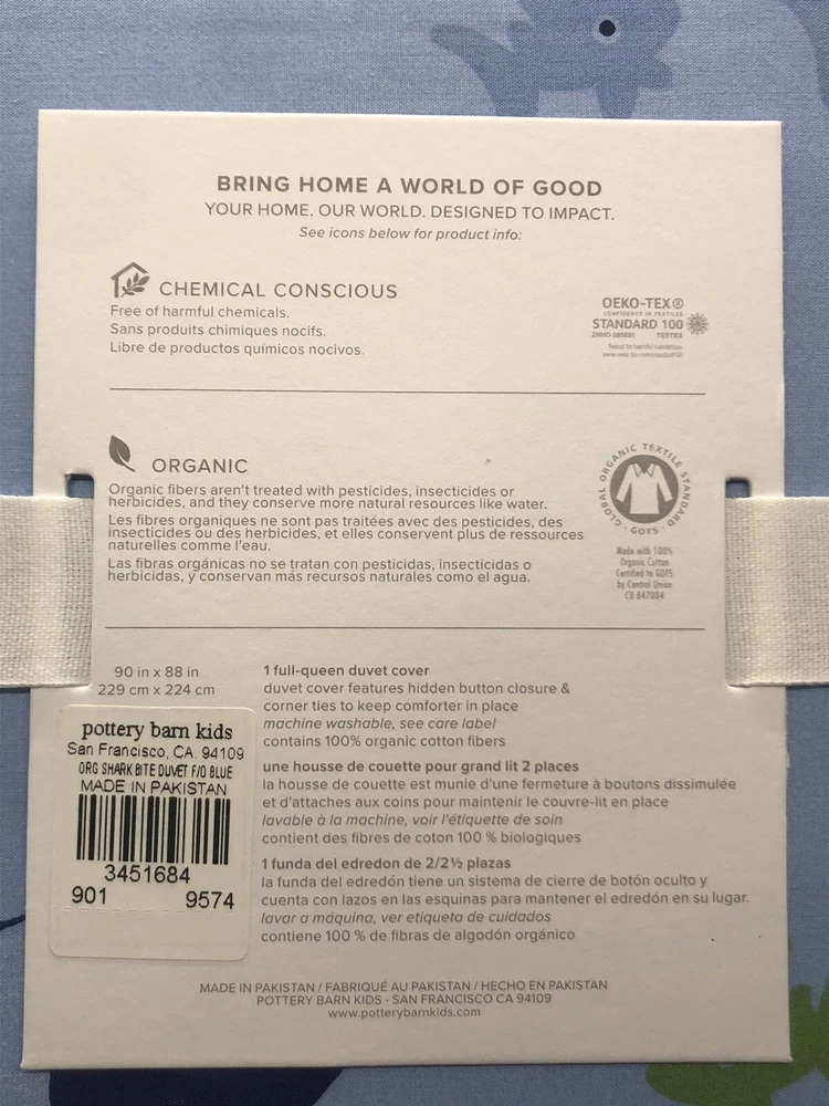 Beautiful brand new PB Duvet! Exactly as described. This seller was excellent to deal with. I accidentally put the wrong shipping address in, and when I contacted them, they promptly replied and immediately offered to correct my error. Wonderful product and wonderful seller!!