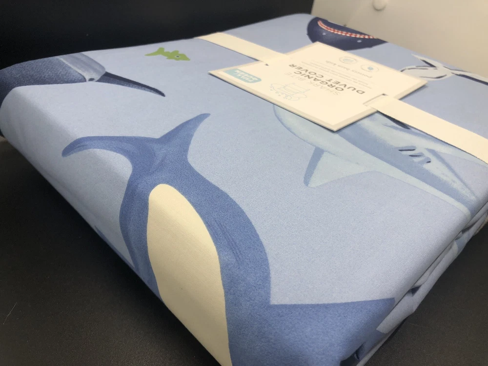 Brand new with tags NWT Pottery Barn Kids SHARK BITE Full / Queen Duvet Cover, measuring 90” x 88”. Blue Ocean Beach Fish Sea with sharks, perfect for an ocean lover or a beach house. Message me with any questions.