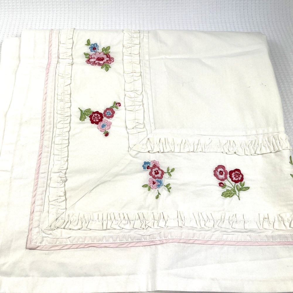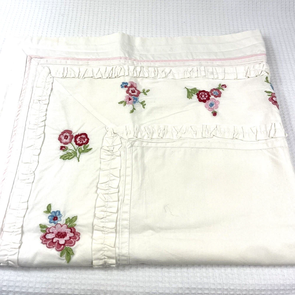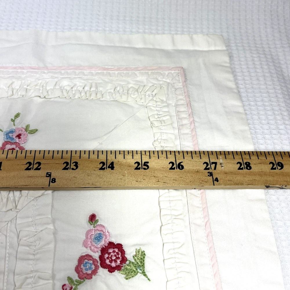 Very Country Cottage sweet feminine pillow sham by Pottery Barn Kids. Made to fit a standard size bed pillow. Lots of detailing, including embroidered deep pink flowers, pink trim and ruffled rouching. Envelope opening on the back. Same day shipping. Ebay will calculate shipping cost based on location and will include their shipping discount. Buyer pays exactly what it costs to ship.