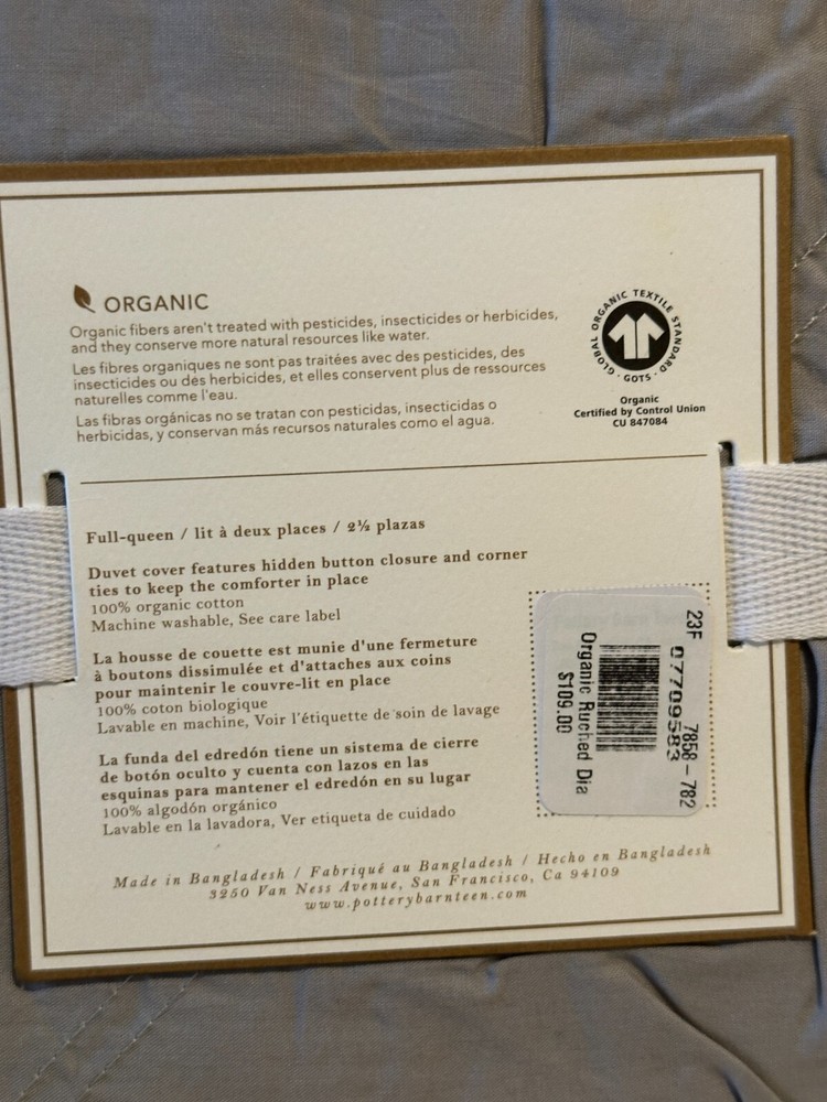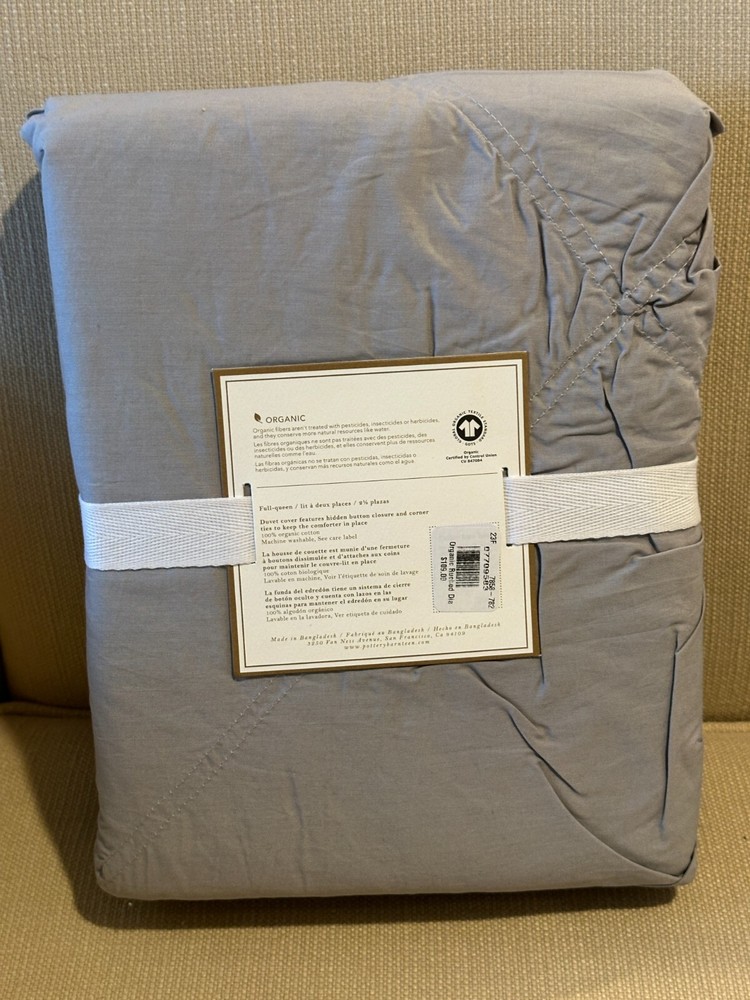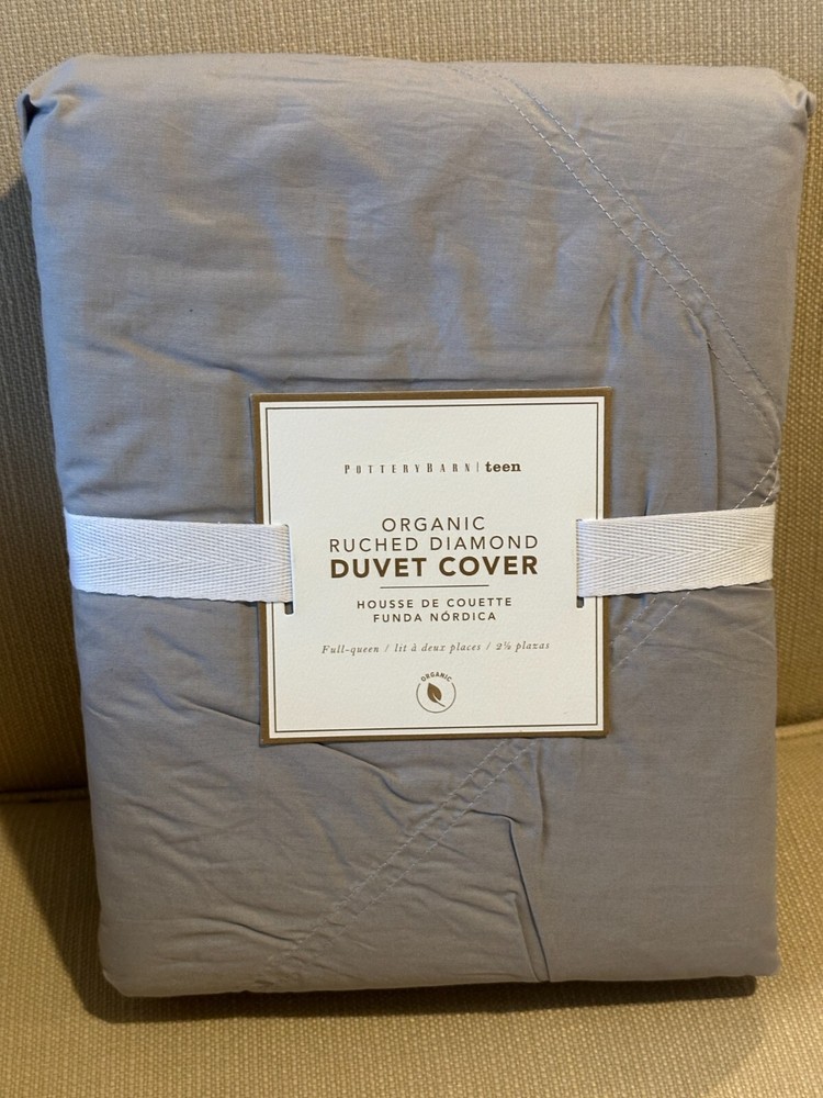 Pottery Barn Kids Teen Ruched FULL / QUEEN Duvet Cover ~ Light Gray NEW...