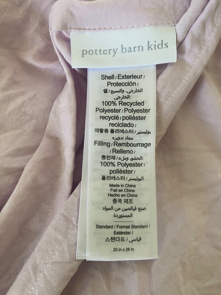 Pottery Barn Kids Textural Floral Sham, Lilac, Standard size with envelope closure. This is an open box purchase so there are no original tags or packaging. Stored in a smoke free environment. Thanks ...