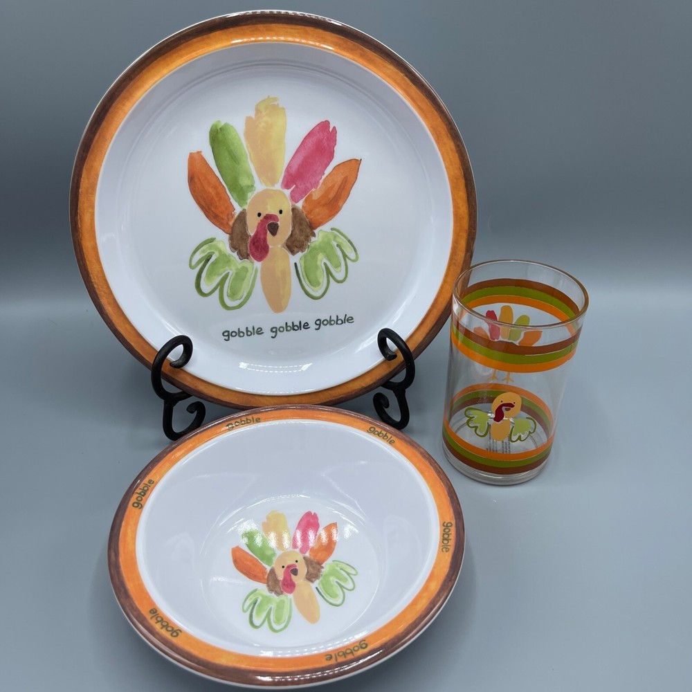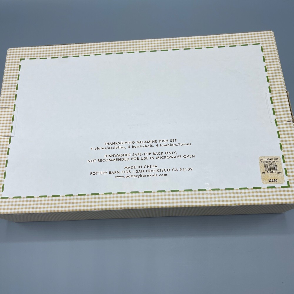 Pottery Barn Kids Thanksgiving/Fall Melamine Dish Set 4 Place Settings NEW Dish measures approximately 8.5" Bowl measures approximately 6.25" Cup measures approximately 4.25" Most of the items I sell are thrift store/estate sale/garage sale finds and are expected to have normal wear and tear. I have described the item to the best of my knowledge. Some wear is to be expected, unless described as flawless or mint. Because of their age, items may have some imperfections such as minor scratches, rim wear, light staining, and/or minor crazing. I try to describe each item accurately and list all known flaws or damage, however there is always the chance that I will miss something. Please look at all of the pictures closely for condition and please email with any questions before purchasing. Thank you for your interest!