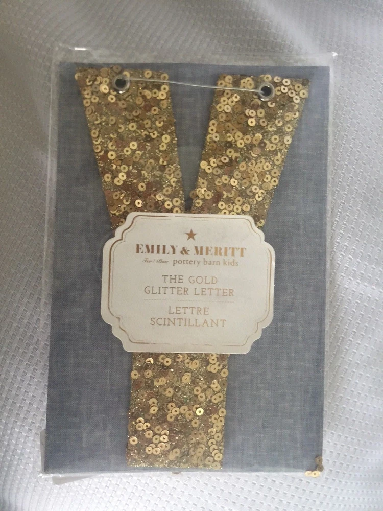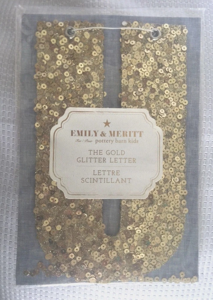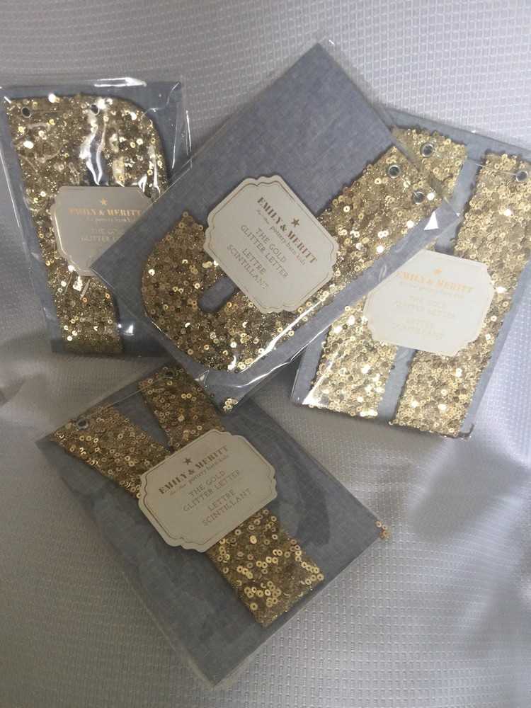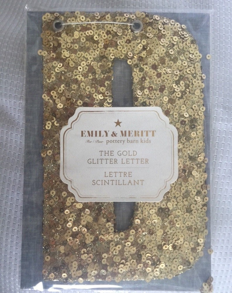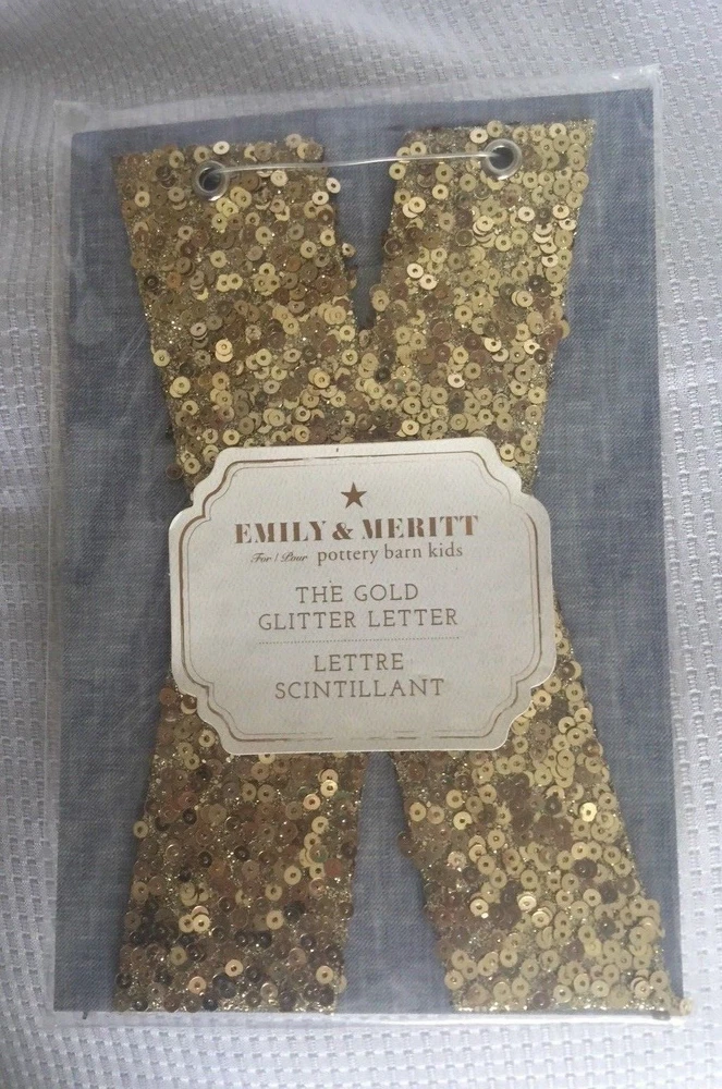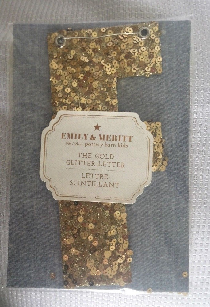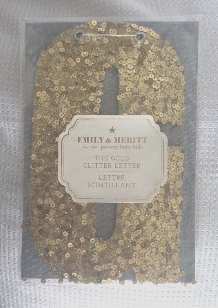 Pottery Barn Kids The Emily & Meritt Gold Letters Room Decor New with tags Add glittering design to your little one's room with this sequin-adorned individual letters to spell out your child's name or initials. Imagined for Pottery Barn Kids by fashion designers Emily Current and Meritt Elliott, this unexpected accent captures their destinctive aesthetic. DIMENSIONS Letters: 8" high Gold sequins cover each letter Thank you for looking. These items are from a Pottery Barn and Williams-Sonoma retail stores, catalog and outlets and may be overstock, clearance or catalog returns and as such the internal tag and/or the exterior packaging may be missing or marked through. Some may have slight imperfections. I don't buy them if I can detect any defects. They are deeply discounted. Please review photos carefully before purchasing. Comes from a smoke free pet free home. If you have any questions, please let me know I am always happy to answer! I ship quickly, often the day after you pay! Always happy to ship to international destinations using eBay Global Shipping only. Payment due no later than two days from auction close. If you have any problems with an item when it arrives please contact me via eBay email and I will be more than happy to resolve the problem. Returns accepted no later than 30 days after receipt of item.