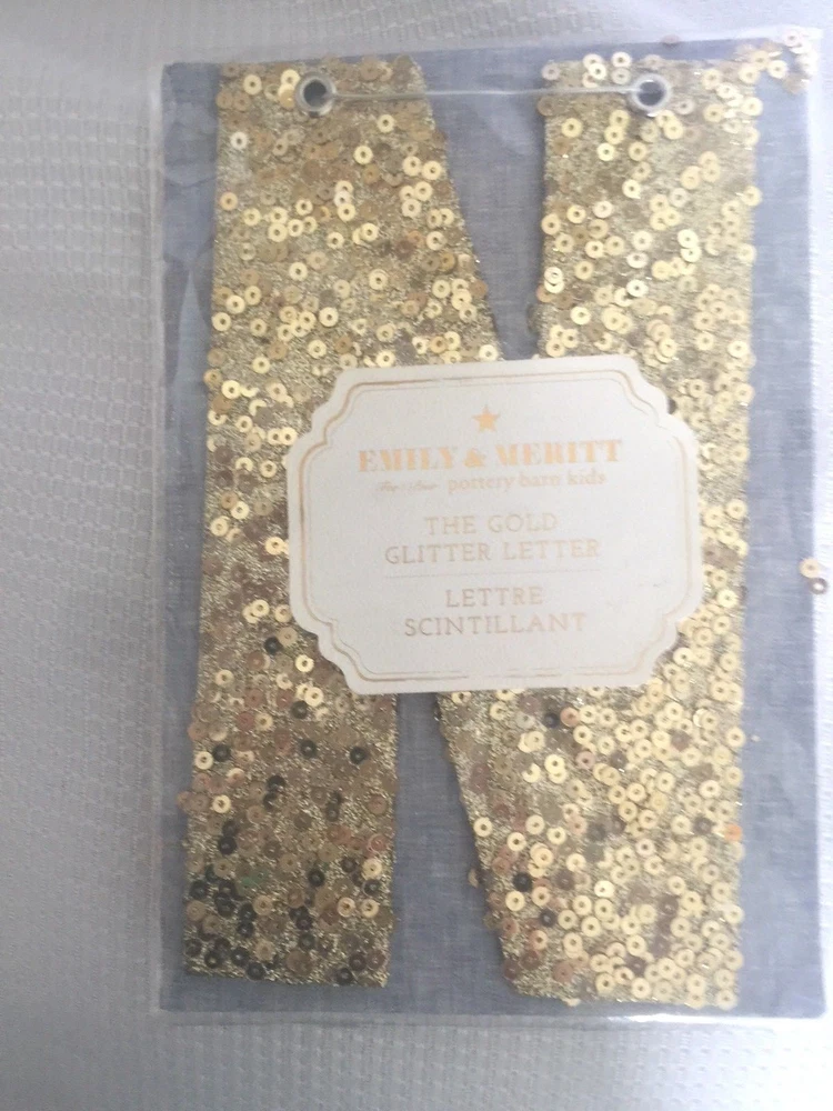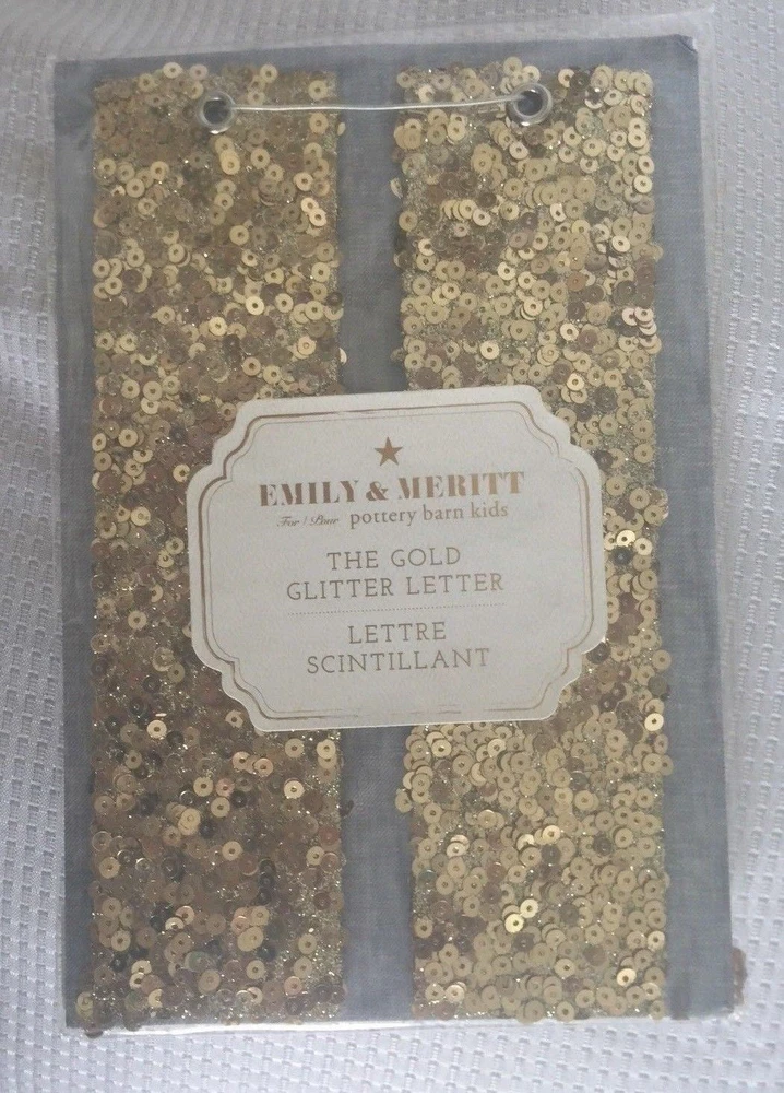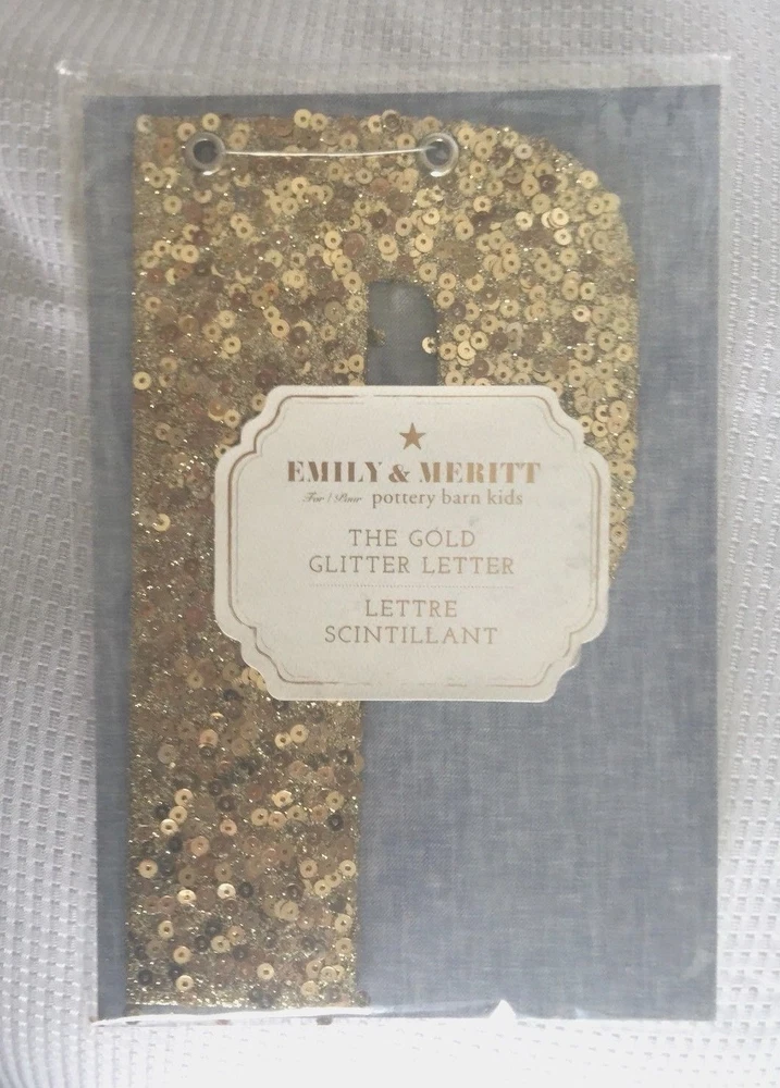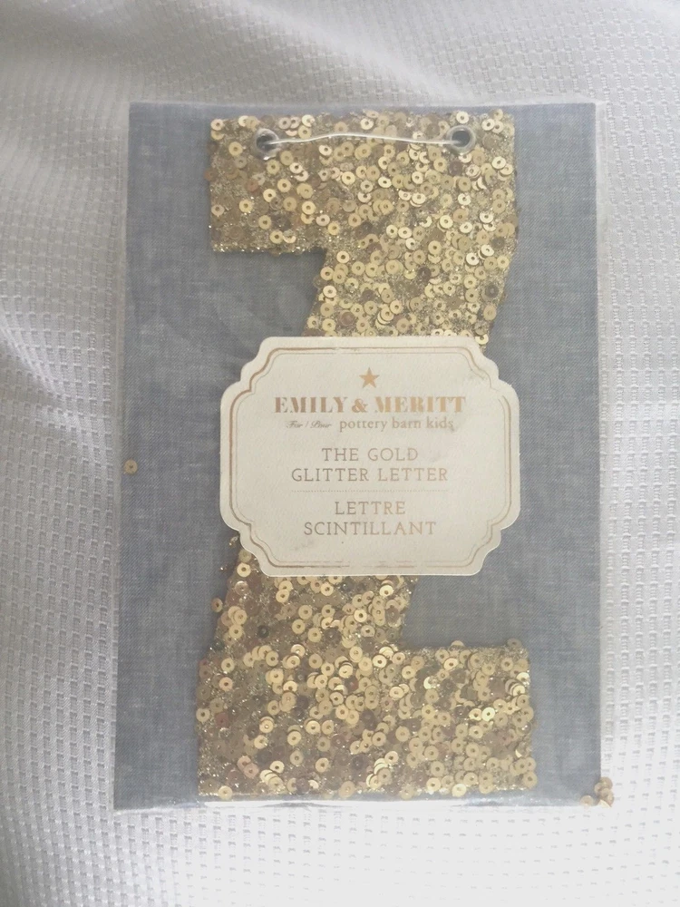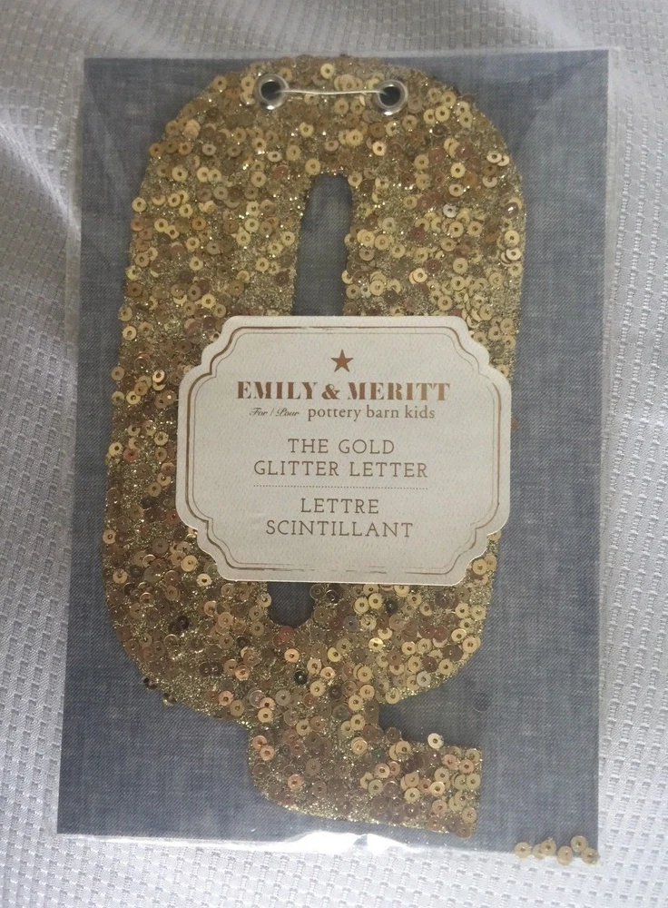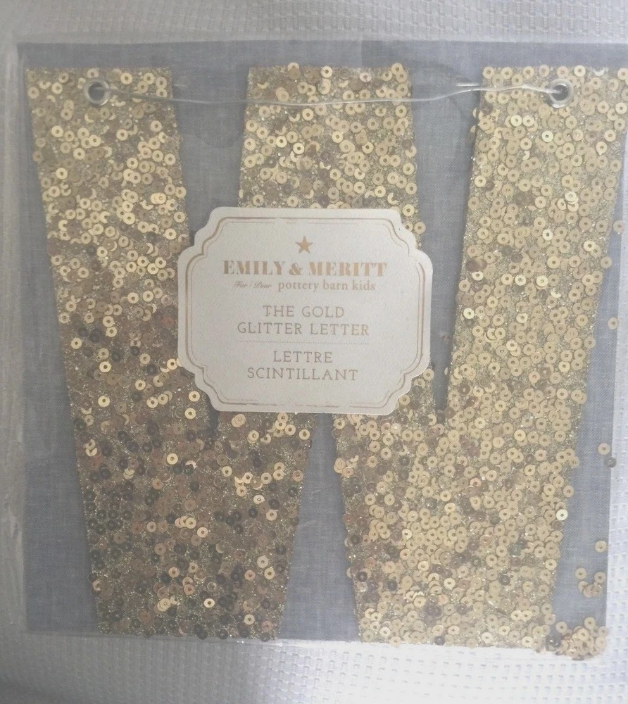 Pottery Barn Kids The Emily & Meritt Gold Letters Room Decor New with tags Add glittering design to your little one's room with this sequin-adorned individual letters to spell out your child's name or initials. Imagined for Pottery Barn Kids by fashion designers Emily Current and Meritt Elliott, this unexpected accent captures their destinctive aesthetic. DIMENSIONS Letters: 8" high Gold sequins cover each letter Thank you for looking. These items are from a Pottery Barn and Williams-Sonoma retail stores, catalog and outlets and may be overstock, clearance or catalog returns and as such the internal tag and/or the exterior packaging may be missing or marked through. Some may have slight imperfections. I don't buy them if I can detect any defects. They are deeply discounted. Please review photos carefully before purchasing. Comes from a smoke free pet free home. If you have any questions, please let me know I am always happy to answer! I ship quickly, often the day after you pay! Always happy to ship to international destinations using eBay Global Shipping only. Payment due no later than two days from auction close. If you have any problems with an item when it arrives please contact me via eBay email and I will be more than happy to resolve the problem. Returns accepted no later than 30 days after receipt of item.
