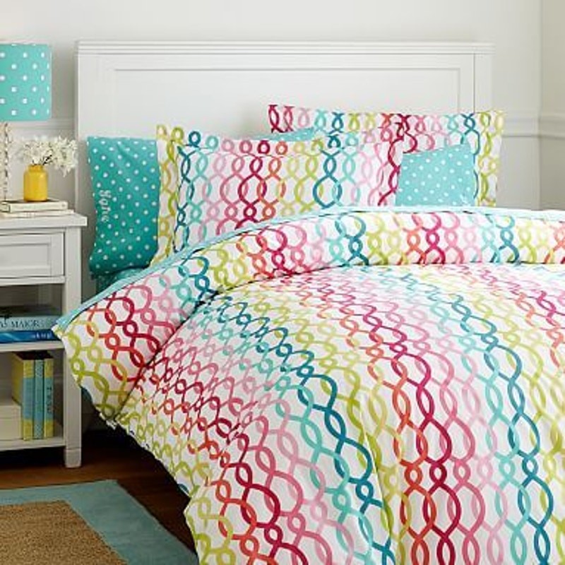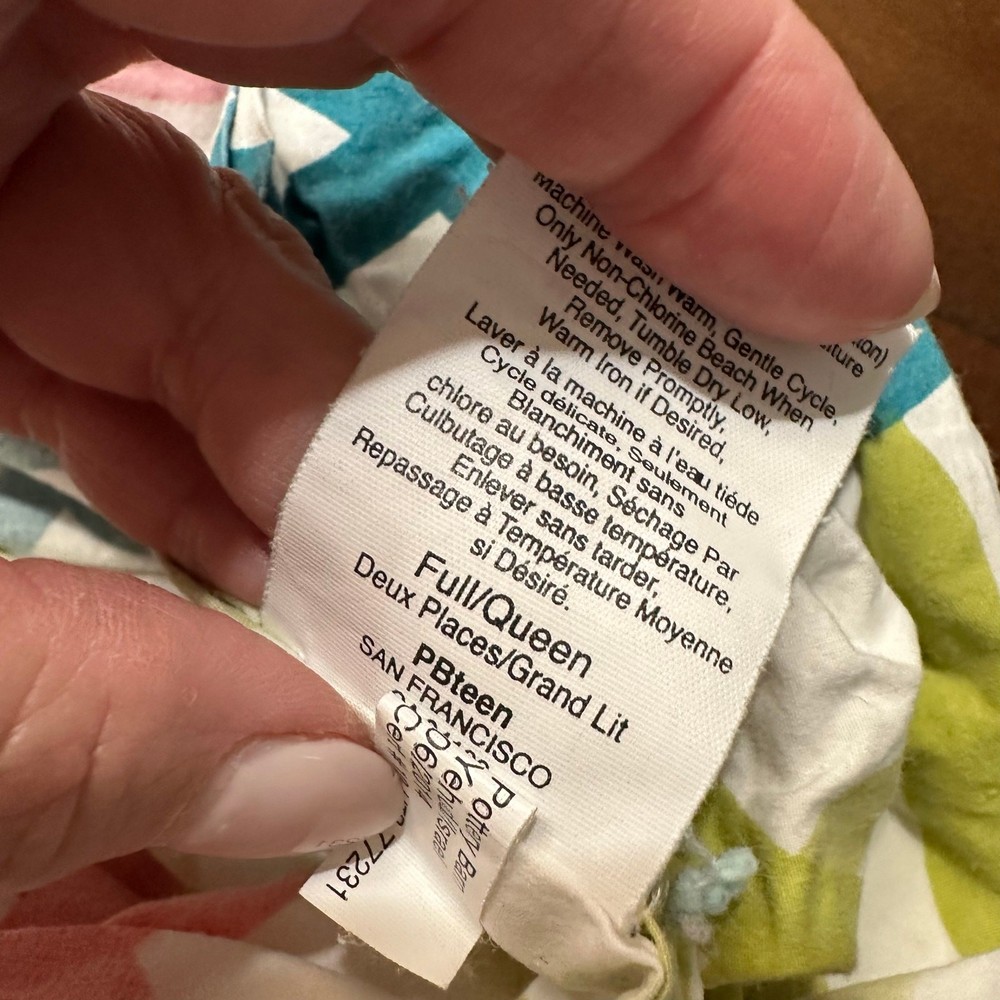<![CDATA[<div>- Bright and cheerful duvet cover set from Pottery Barn Kids - Includes Full/Queen duvet cover and 2 matching pillow shams - Features a colorful interlocking geometric pattern in shades of pink, orange, green, teal, and blue - 100% cotton construction for soft and breathable comfort - Adds a playful and energetic touch to any kid's or teen's room - Button closure on duvet cover; envelope closures on shams **Size:** - Duvet Cover: Full/Queen - Pillow Shams: Standard (2) **Condition:** In gently pre-owned condition with no visible flaws. Please review photos to assess the item's condition. **Shipping:** In an effort to be more environmentally friendly, your package may include some recycled materials but will be safely packaged. **Tags:** Pottery Barn Kids bedding, colorful duvet set, geometric print, girl’s room decor, vibrant bedding, full/queen duvet cover, Palm Beach style, cotton bedding set.