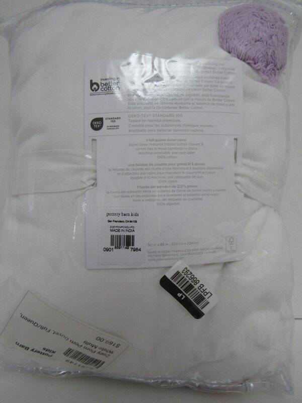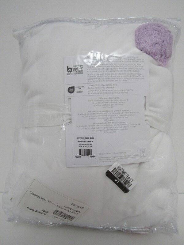 Pottery Barn Kids Zoey Pom-Pom Duvet Cover Full Queen White/Multicolor NWT Pottery Barn Kids Zoey Pom-Pom Duvet Cover, New with tags.... One f/q duvet cover----90" wide x 88" long----229 x 224 cm Color--White/Multicolor Strewn with confetti-colored pom-poms, this duvet lends a sweetly playful accent to your kid’s room. The pure cotton ensures softness and breathability for comfy sleep. Product Information Made of 100% cotton. Duvet cover is finished with interior corner ties and a hidden button closure to keep the duvet in place. 200-thread count. Duvet cover reverses to same as front. Machine wash. Imported. Care Wash bedding before first use. Machine wash per vendor guidelines; gentle cycle. Use only non-chlorine bleach, if needed. Tumble dry on low heat. Warm iron as needed. See my other listings for more great items! Please read our return policy before you purchase: We take pride in our business, and we strive to do our best. We purchase brand new items and we do our best to give accurate descriptions and photos. If you have any questions about an item, please contact us through eBay prior to your purchase. We try our best to resolve any issues as fast as possible. Please contact us right away if there are any issues with your purchase. Item must be returned within 30 days of the original delivery date. When we receive the returned item, inspect it, and it is found to be in the same condition that we shipped it in (brand new, unused and in the original packaging) You will immediately receive your refund. Returns that have any signs of use or handling will NOT be accepted and no refund will be given. Thank you! Please read our return policy before you purchase: We take pride in our business, and we strive to do our best. We purchase brand new items and we do our best to give accurate descriptions and photos. If you have any questions about an item, please contact us through eBay prior to your purchase. We try our best to resolve any issues as fast as possible. Please contact us right away if there are any issues with your purchase. Item must be returned within 30 days of the original delivery date. When we receive the returned item, inspect it, and it is found to be in the same condition that we shipped it in (brand new, unused and in the original packaging) You will immediately receive your refund. Returns that have any signs of use or handling will NOT be accepted and no refund will be given. Thank you! Feedback: We strive to give you the best service. If you have any issues regarding your item, please contact us right away . Customer satisfaction is our priority. We accept MasterCard, Visa, Discover, Paypal and American Express, securely and conveniently via eBay Managed Payments. We will use the address listed on your eBay account...so please make sure it is correct. WE WILL SHIP TO CONFIRMED EBAY ADDRESSES ONLY!! DO NOT send money via PayPal if your address is not confirmed...we will not be able to accept it. We provide fast shipping! Your item will be shipped within 1-3 business days via UPS, USPS priority mail or Fed-Ex. We reserve the right to choose shipping company. They can NOT deliver to PO boxes, so please provide us with a physical street address. Once your item is shipped you will receive an email with your tracking number. We are HAPPY to combine shipping on items that can be combined. Please email us for shipping rates to HI and AK. Signature at delivery is required for all items over $250. All items must also be shipped to the address on your eBay account.. We are enrolled in eBay's Global Shipping Program . Only countries approved in eBay's Global shipping can receive deliveries from us. Other Items Feedback Contact txzj pxzj432 txzj-11 txzj-4 txzj1 txzj115