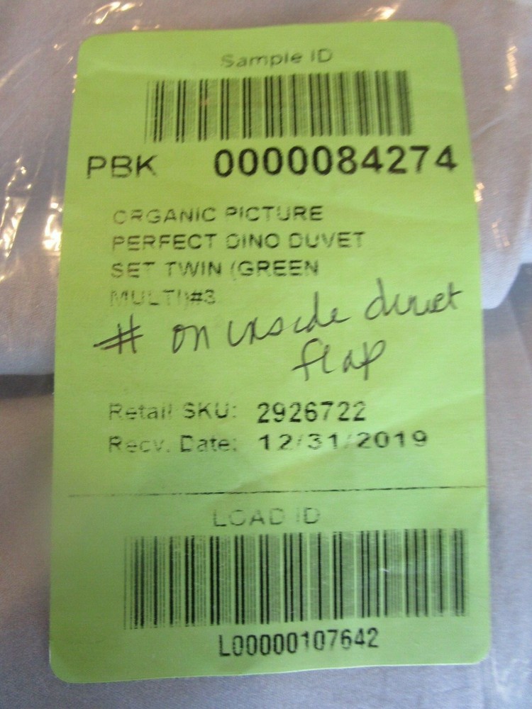 Up for Auction - Pottery Barn Kids picture perfect Dino Dinosaur twin duvet sham photo shoot sample used only for a Pottery Barn Kids photo shoot sample may be missing tags has numbers inside the duve...
