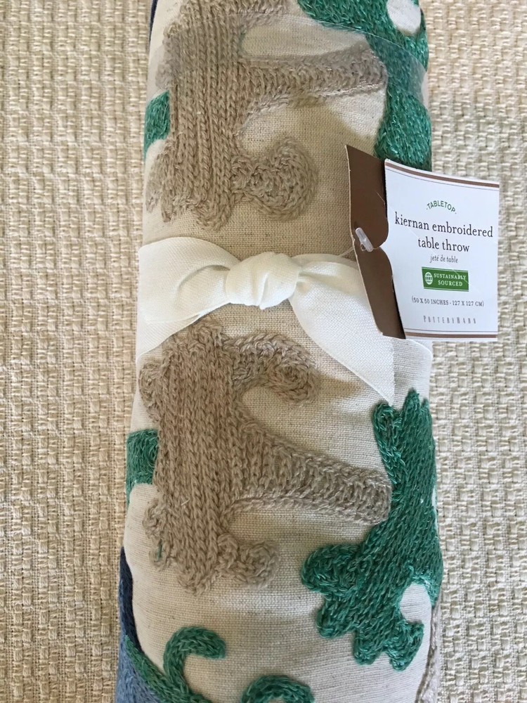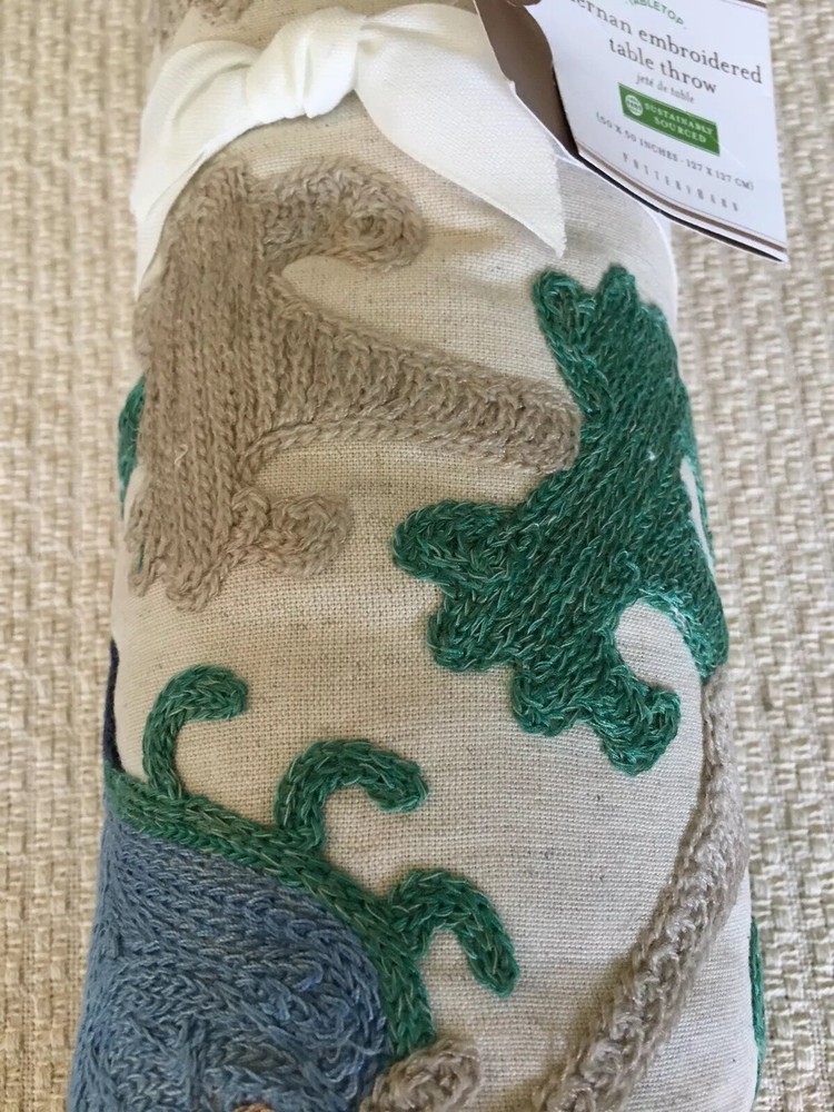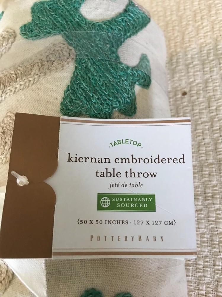Pottery Barn Blue arella embroidered Table Throw 50 x 50 Blue taupe ivory green Absolutely Gorgeous!! New with tags. Shipped with USPS Priority Mail Retail $130