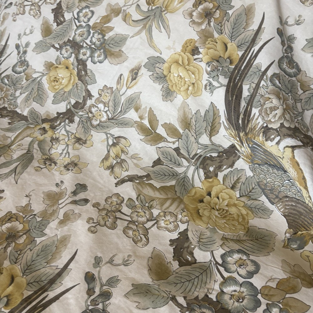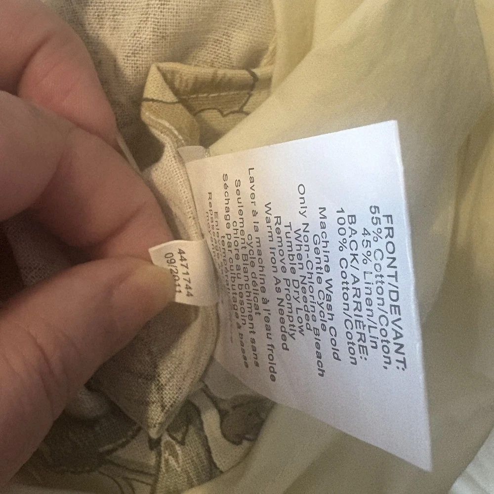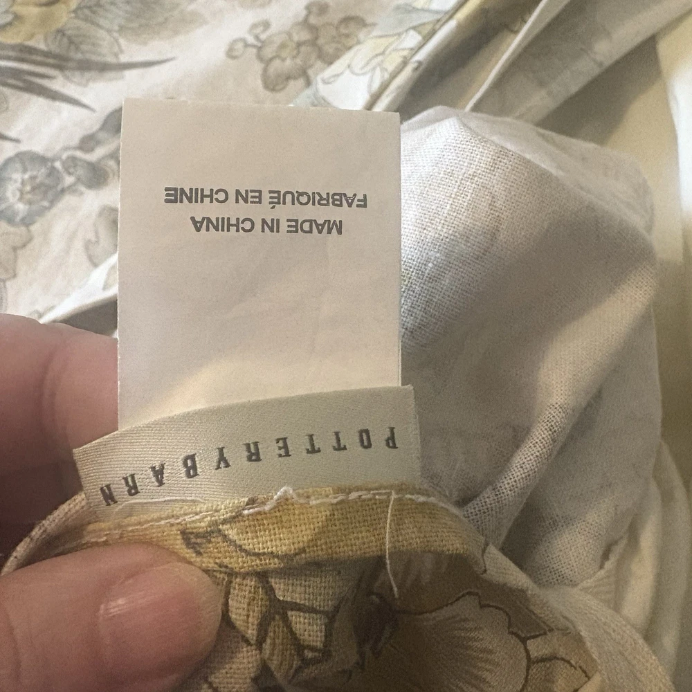 Elevate your bedroom with the Pottery Barn King Duvet Cover from the 2011 Chic Chinoiserie Peacock collection. The beige and yellow Peacock Floral pattern boasts a Rectangular shape and is made from a luxurious blend of Linen and Cotton with a thread count of 401-600. This Asian-style duvet cover features a chic and bohemian design with nature-inspired elements such as flowers, birds, and a peacock. It has a button closure type and is machine washable with care instructions included. This duvet cover is also STANDARD 100 by OEKO-TEX certified, ensuring quality and safety. Bring luxury and elegance to your bedroom with this Pottery Barn duvet cover.
