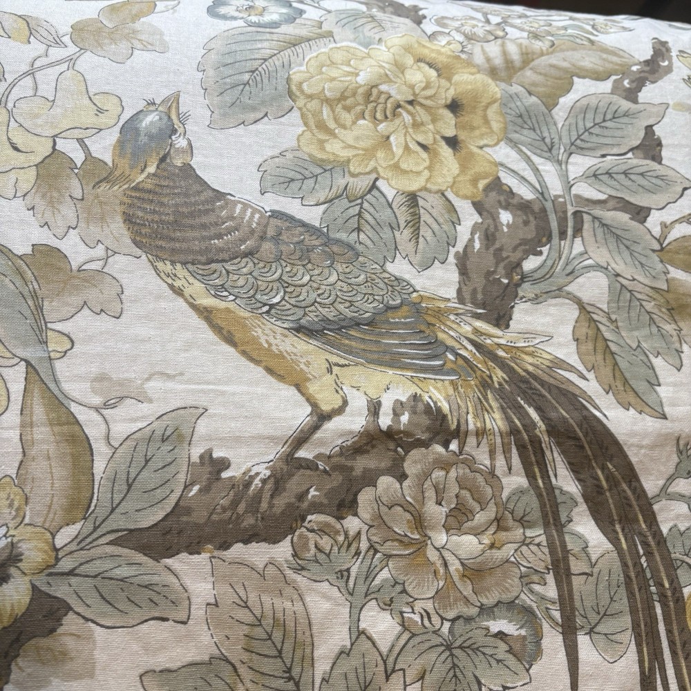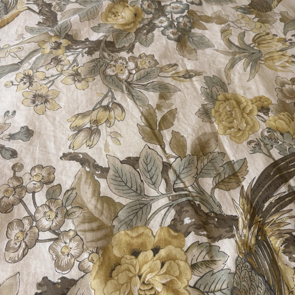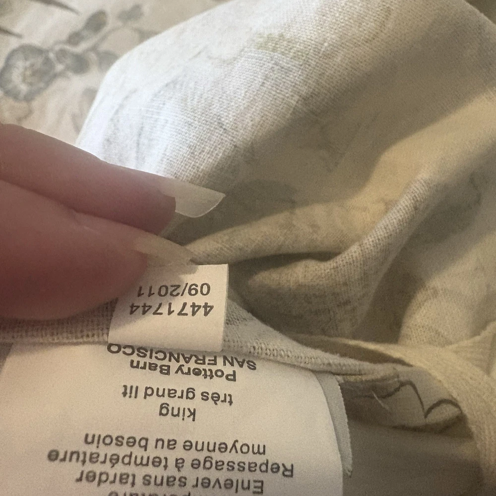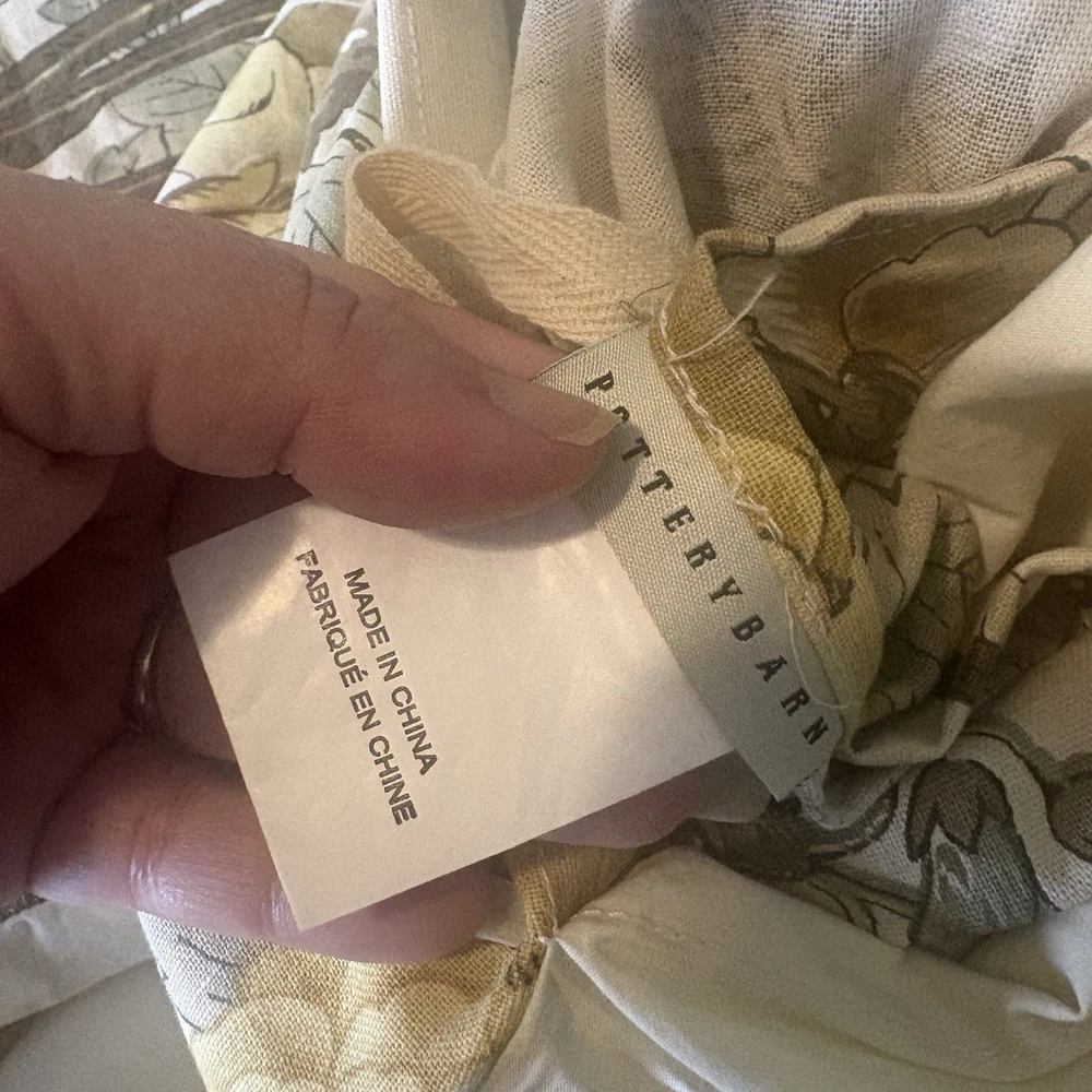 Elevate your bedroom with the Pottery Barn King Duvet Cover from the 2011 Chic Chinoiserie Peacock collection. The beige and yellow Peacock Floral pattern boasts a Rectangular shape and is made from a luxurious blend of Linen and Cotton with a thread count of 401-600. This Asian-style duvet cover features a chic and bohemian design with nature-inspired elements such as flowers, birds, and a peacock. It has a button closure type and is machine washable with care instructions included. This duvet cover is also STANDARD 100 by OEKO-TEX certified, ensuring quality and safety. Bring luxury and elegance to your bedroom with this Pottery Barn duvet cover.