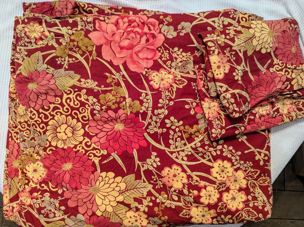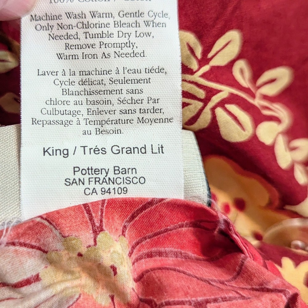 This is a beautiful, vibrant duvet set from Pottery Barn. The set includes the King Duvet Cover and 2 standard pillow cases. The set is 100% cotton and the duvet cover has a button closure and corner ties to secure your duvet insert. With summer on the way, you could definitely use the duvet cover on its own. The set is in beautiful condition, has been washed using fragrance-free detergent, the pillow cases were gently pressed, then the set has been stored in a poly bag so it will be ready for use when you receive it. Please ask any questions before bidding. Thank you for looking!