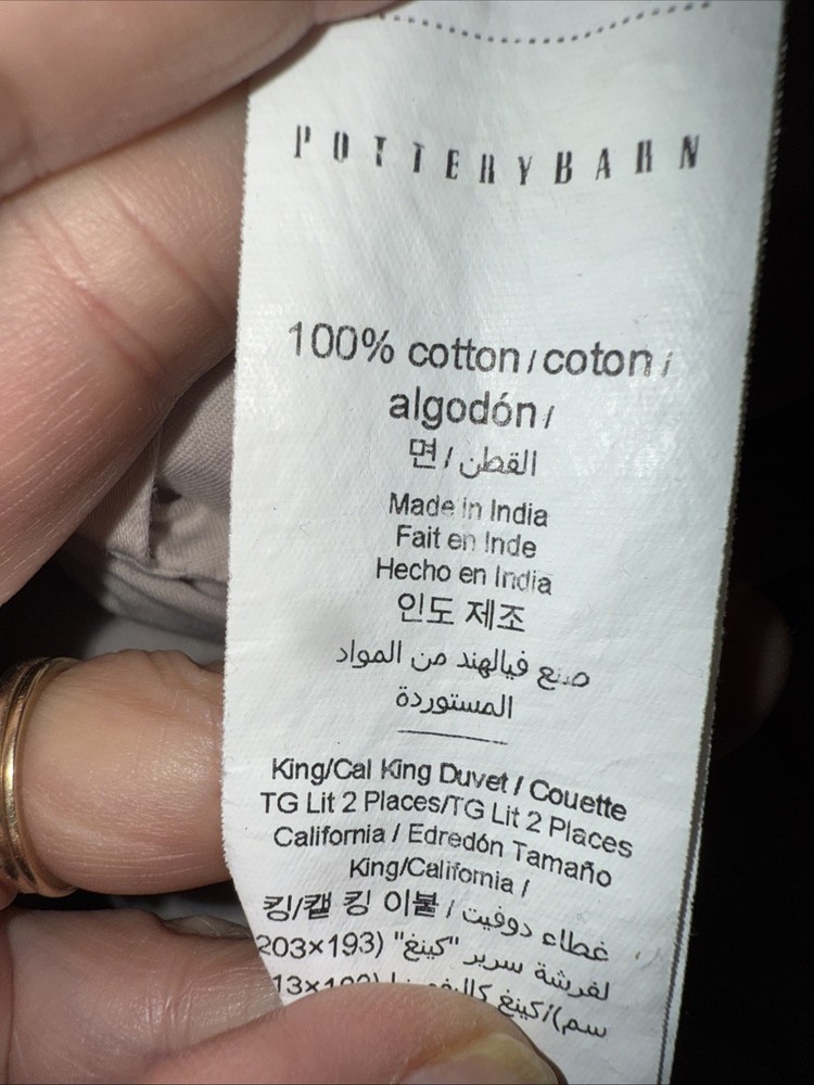 This duvet looks like something blue has transferred onto the duvet. It is faint blue but is on various areas of the duvet. Also a few stains as seen in photo No holes Price is lowered AS IS...