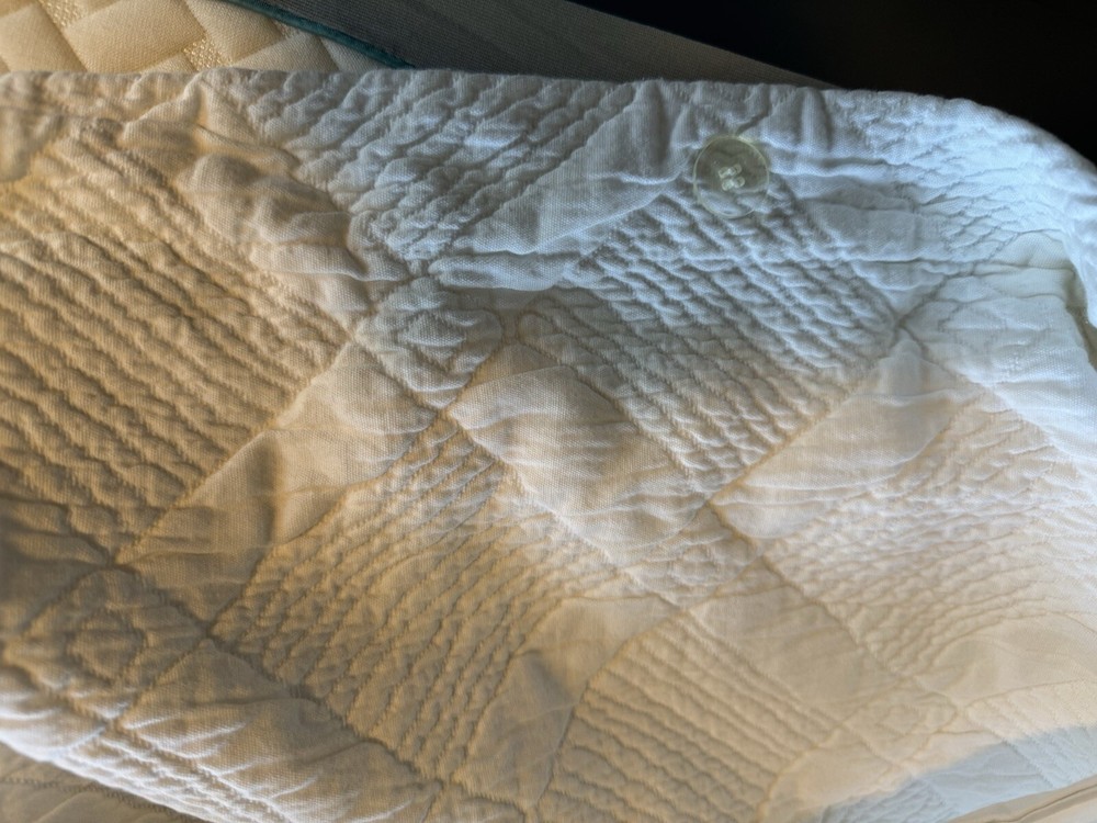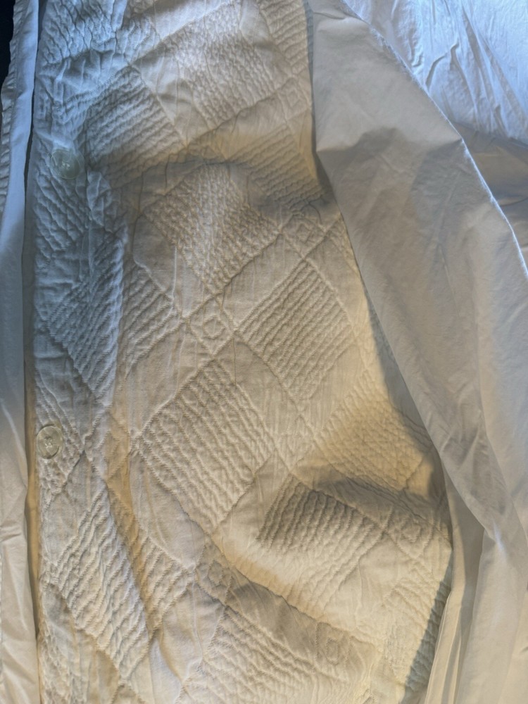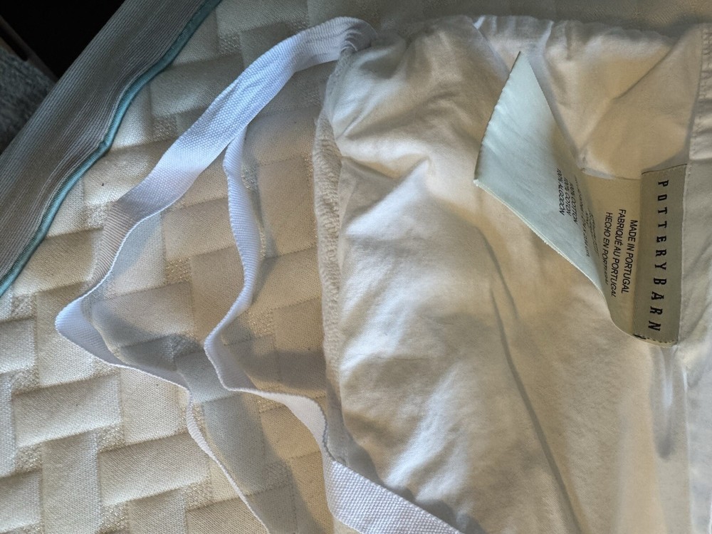Pottery Barn King Duvet Cover White 100% Cotton Matelasse PORTUGAL. This duvet has been stored inside out in a plastic container with a lid in a smoke-free house. EXC condition with no stains, rips or tears. Beautiful, heavy all white duvet comes with one matching EURO sham. Other coordinating shams can be purchased to finish the look if you desire more than this one. Inside ties in all corners and middle of top and bottom to hold the insert in place. Button closure. The sham is a fold-over closure and could use a button or piece of velcro to keep it closed and tidy. Quality is like all PB duvets. Happy to answer questions or send additional pics. I can combine shipping for purchase of multiple items. All sales are final.