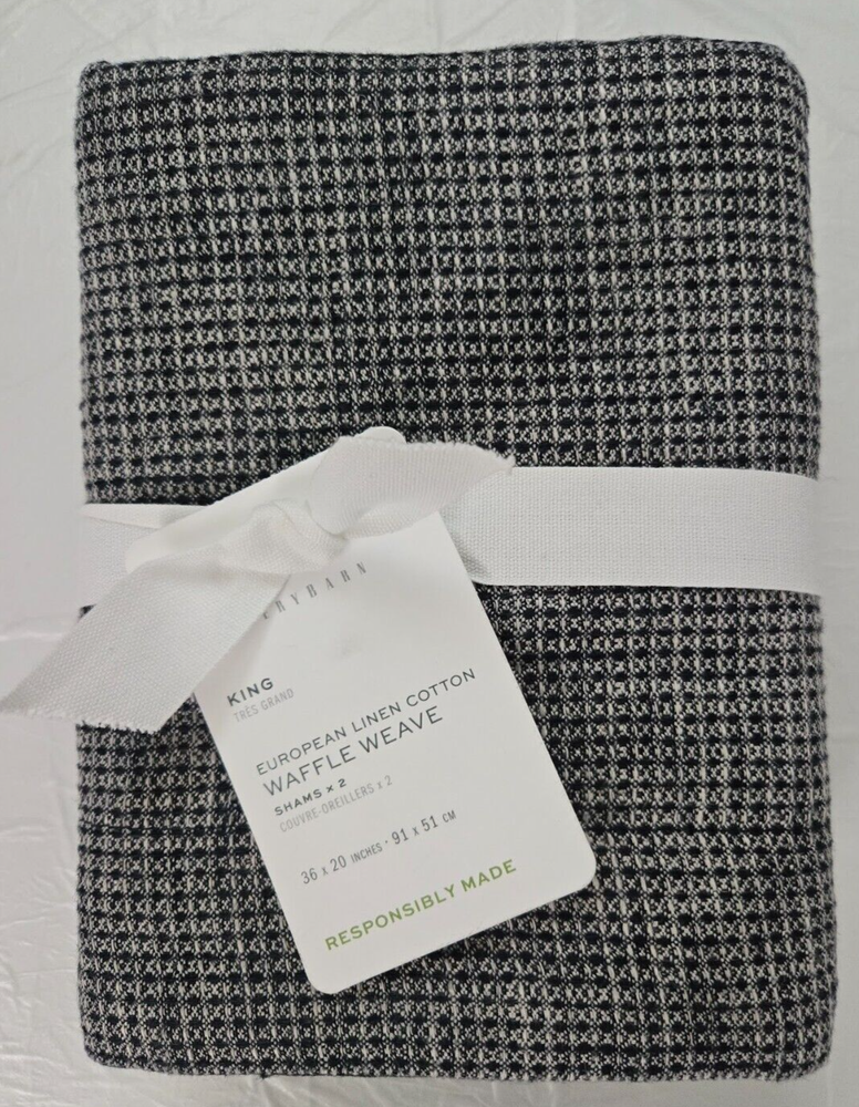 New With Tagged, as Shown on Photos. Pottery Barn King European Linen Cotton Waffle Weave 2-Shams 26" x 26" Midnight Add a touch of modern elegance to your bedroom with this Pottery Barn European Linen Cotton Waffle Weave Pillow Sham set. Made of 100% European Flax Linen shams in Midnight color have a luxurious feel that will make you want to snuggle in all day long. The waffle weave pattern adds a stylish touch to your bedding ensemble. Each set includes two shams, each measuring 36 inches in width and 20 inches in length. The shams feature a no closure design, making them easy to slip over your pillows. Machine washable for easy care, this Pottery Barn European Linen Cotton Waffle Weave Pillow Sham set is the perfect addition to your bedding collection.