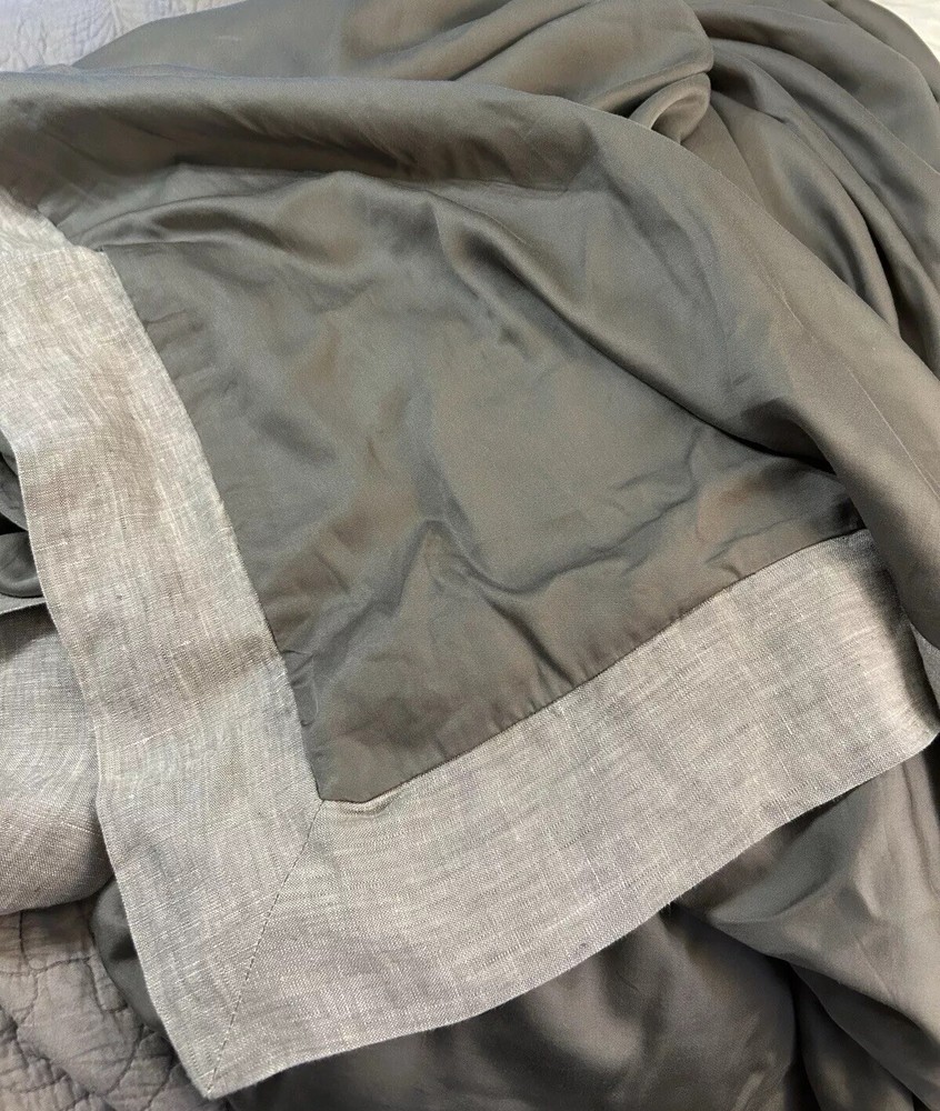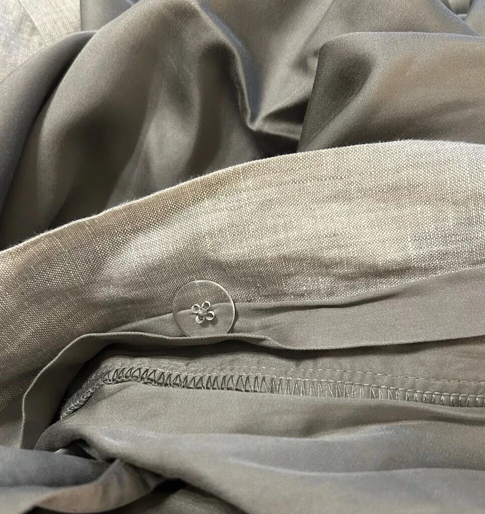 Beautiful set! Duvet and shams are not the same model. They do blend very well. Shams are 24” x 29”. Duvet is 112” x 98”. Duvet is lyocell and linen. Shams are cotton and linen....