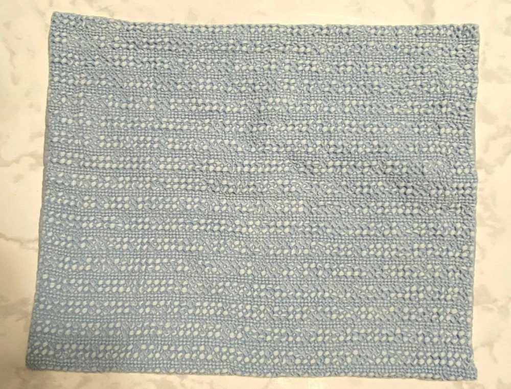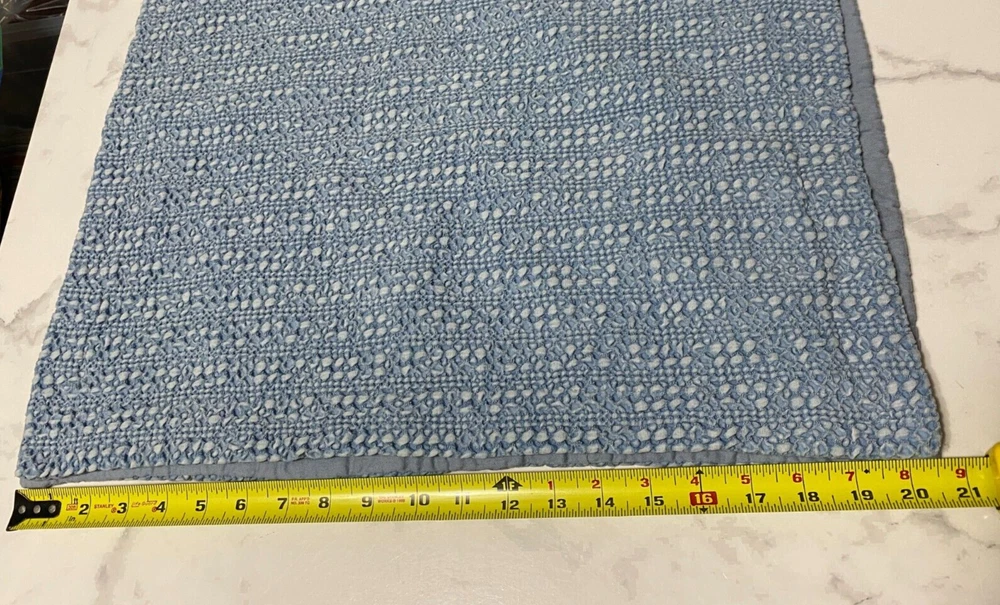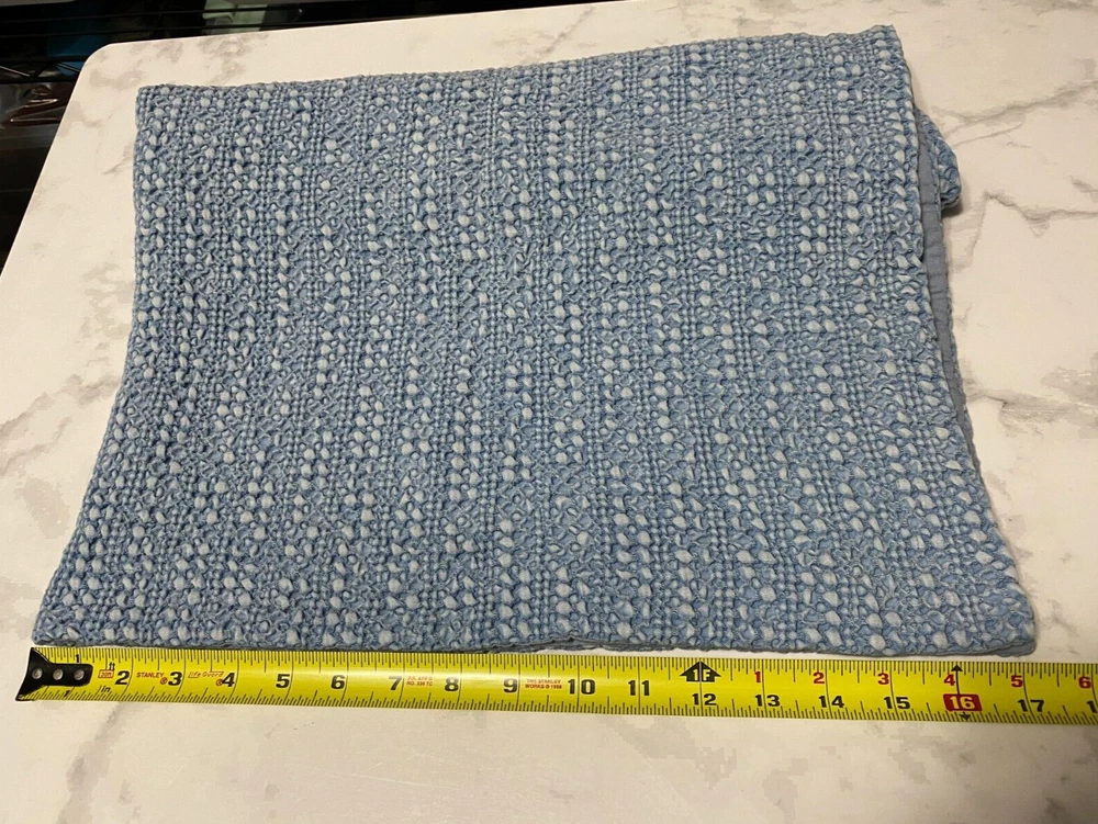 Pottery Barn King Pillow Sham Blue, solid honeycomb pattern 100% Cotton, Made in India Easy envelope closure in back, machine washable Label says it measures 36" x 20" new, but it's been laundered and now measures about 34" x 20.5" - See Photos Condition - Not stains or holes, clean, minor pilling on the back. KINDLY ZOOM IN on all photos and ask any questions before buying . Colors may vary due to textures, lighting, and monitor/device settings. On my monitor, the colors in Photo #1-9 are accurate. The last 4 photos #10-13 are much lighter than the actual item. Ruler/measuring tape and any background items are not included in listing. All Sales Final. Thanks for stopping by Rocky Road Trading Post ~