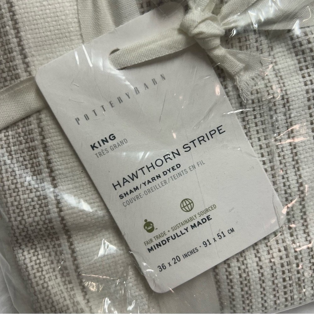 <![CDATA[<div>Pottery Barn King Sham Hawthorn Stripe Yarn Dyed Taupe This listing is for 1 King Sham Brand new with tag! NWT Front fabric of is woven of 100% yarn-dyed cotton. Sham features an envelope closure. Sham reverses to solid. 200-thread count. King Sham: 20" h x 36" w Flange: 2" Comes from a clean and smoke free home!