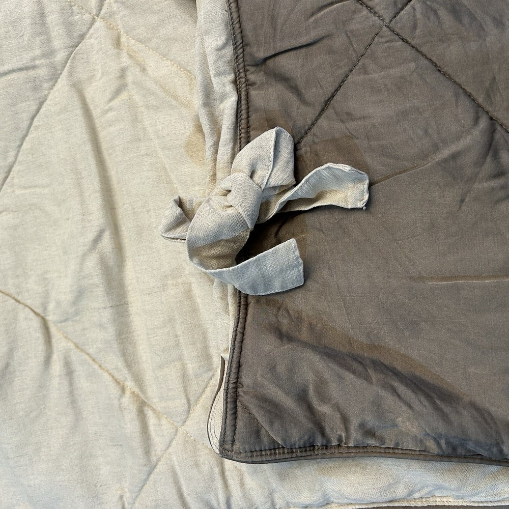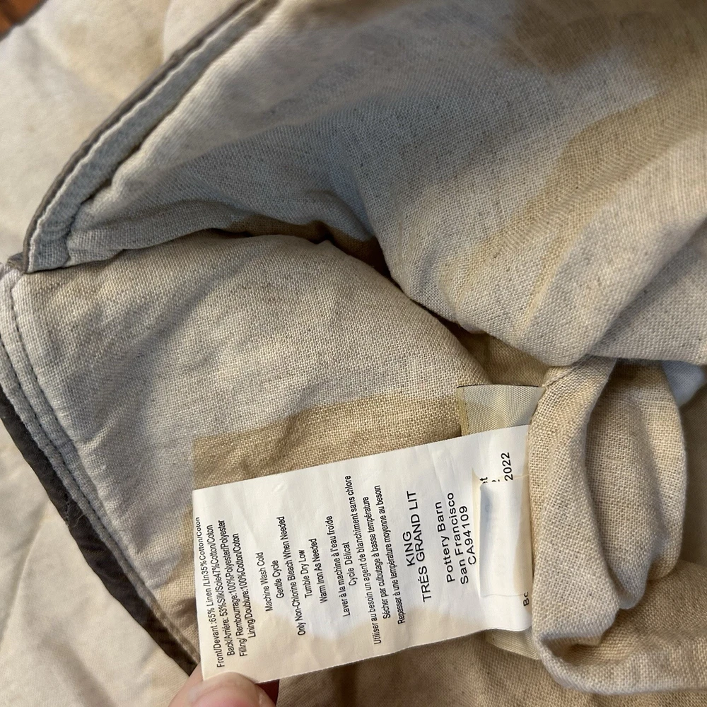 This is a gorgeous sham with a silk front and linen reverse! It is king sized with a tie closure. Picture 2 shows the colors most accurately 😄 Any seeming variation in the color is just lighting.