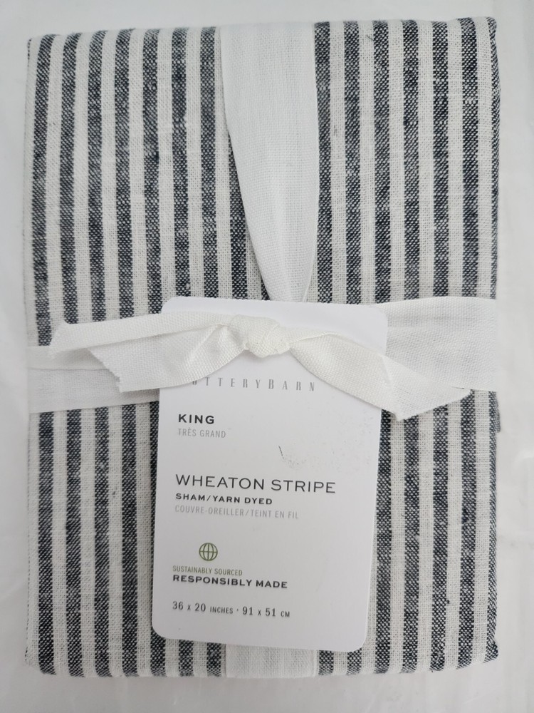 New With Tagged, as Shown on Photos. Add a touch of modern style to your bedroom with this Pottery Barn Wheaton Stripe pillow sham. The rectangular sham is designed for a king size bed and features a classic stripe pattern in white and navy. Made of a soft and durable blend of 55% linen and 45% cotton, this sham is machine washable for easy care. The sham has no closure and is perfect for both teens and adults. Ideal for a variety of bedroom themes, this Pottery Barn Wheaton Stripe pillow sham is a must-have for any home.