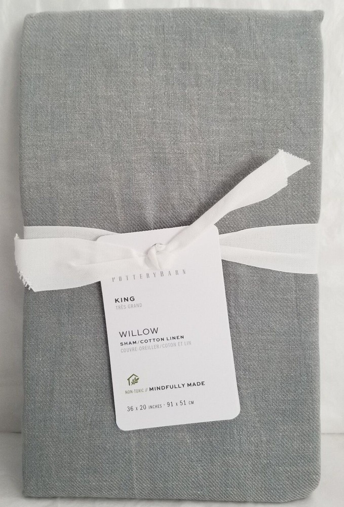 New With Tagged, as Shown on Photos. Pottery Barn King Willow Cotton Linen 1-Sham 36" x 20" Blue 70% linen and 30% cotton blend. Yarn-dyed for long lasting color. Sham features an envelope closure. Machine wash. Imported.
