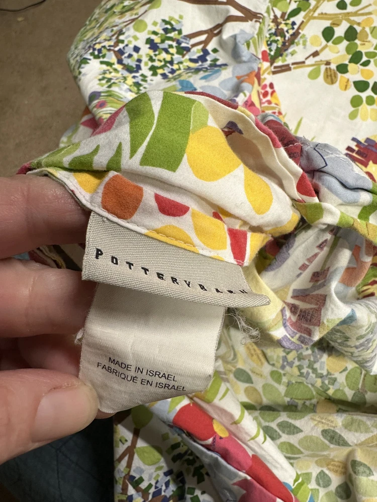 A few light marks and slight overall yellowing that did not wash out. No holes or damage found.