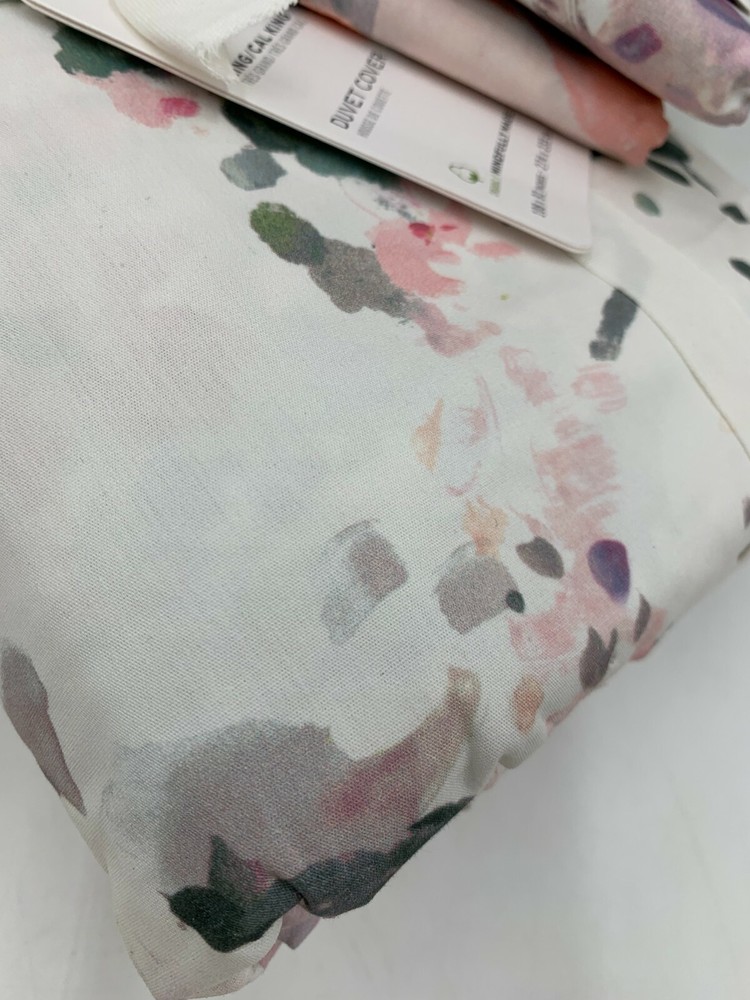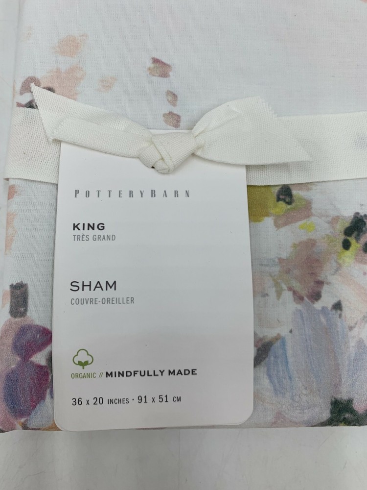 Pottery Barn Kinsley King California King Duvet Cover w2 King Shams 7829M Item is brand new. Auction includes one King / California King Duvet Cover and two King shams. Made of 100% organic cotton percale. Duvet and sham reverse to same. Duvet features a zipper closure with inner ties that keep insert in place; sham features a zipper closure. Machine wash. Imported. DIMENSIONS Duvet Cover King/Cal. King: 92" l x 108" w Shams King: 20" h x 36" w CARE AND MAINTENANCE Machine wash in warm water; gentle cycle with like colors. Only non-chlorine bleach when needed. Tumble dry on low heat; remove promptly. Warm iron as needed.