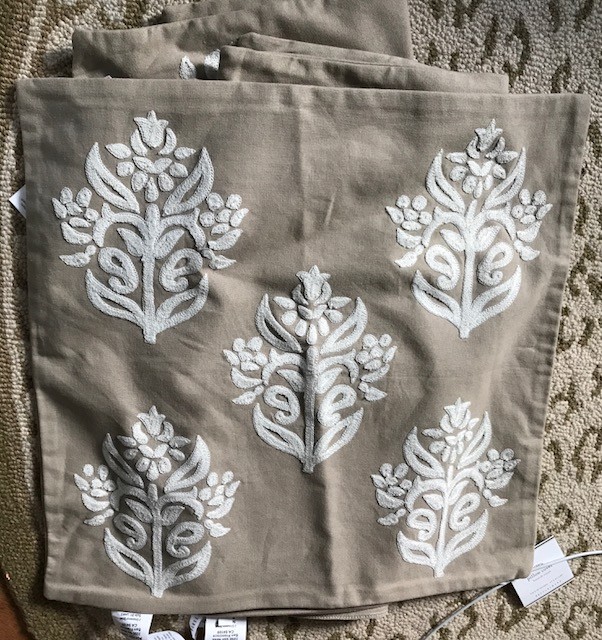 POTTERY BARN KAYLA PILLOW COVER Embroidered floral motifs add a touch of personality to a layered bed or sofa. Pick the color that works for your style. Made of 100% cotton. Reverses to same as front. Zipper closure. Insert sold separately. Imported. Size available is 18 in. square. Color available is FLAX with IVORY FLORALS Item is BRAND NEW! A d d i T i O N a l P h o T O s A v a i L a B Le U p O n R e Q u e S T PURCHASED DIRECTLY FROM POTTERY BARN. AUTHENTIC.