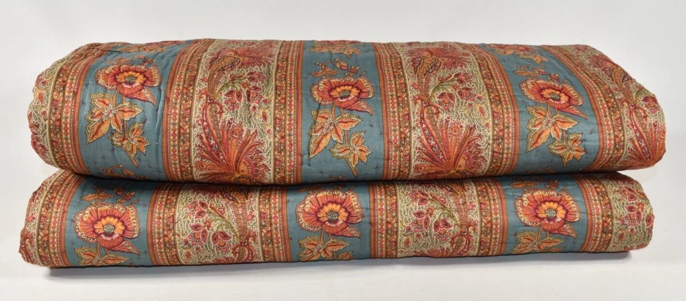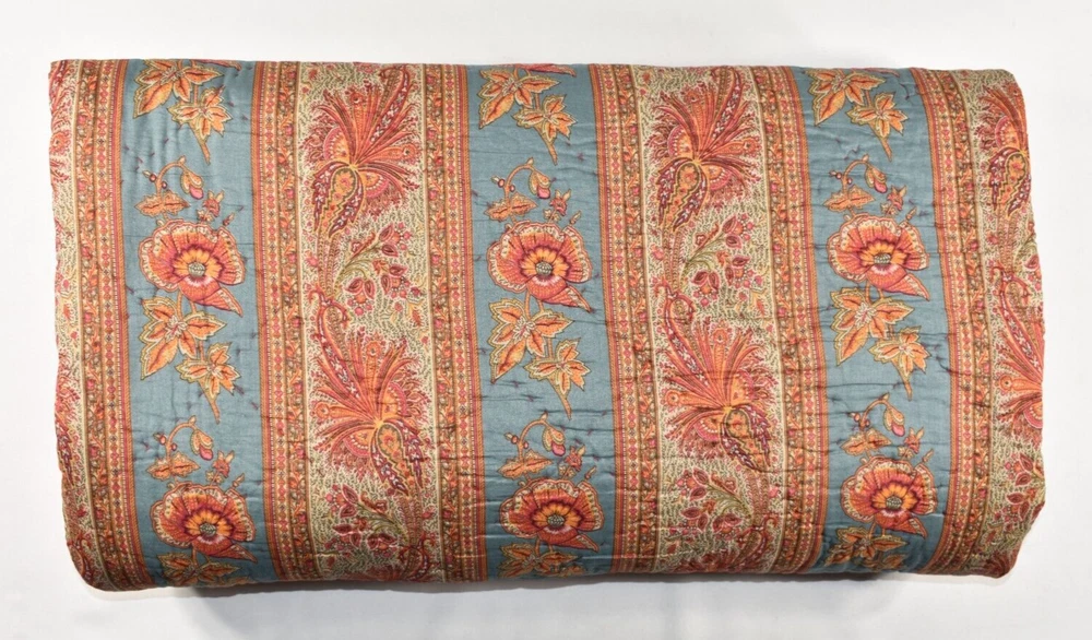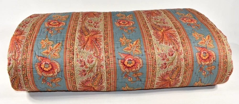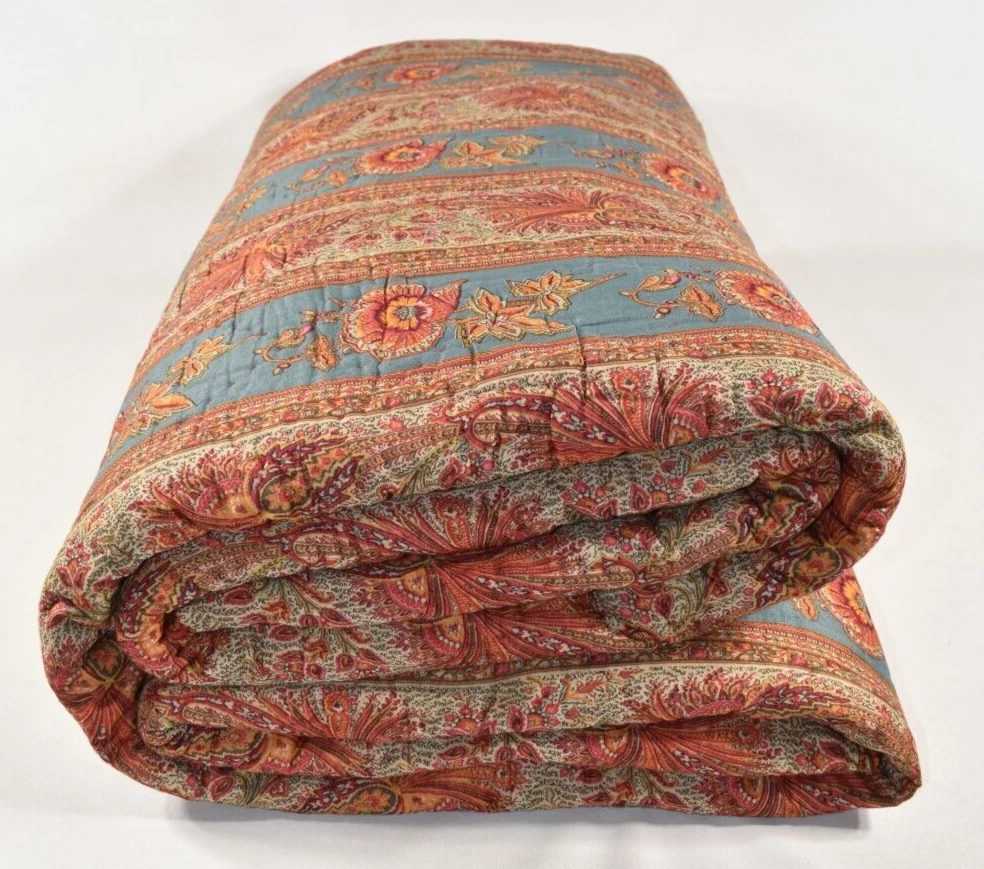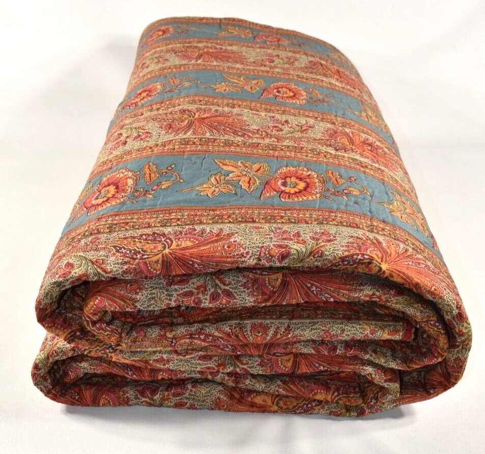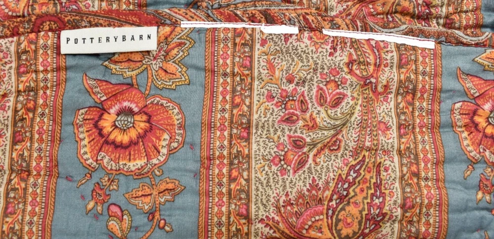 Pottery Barn Lara Paisley Floral Stripe Reversible Full Queen Quilt Coverlet Size: Full/Queen - Approximately 92" long x 90" wide. Condition: Very good, clean, gently used condition. No rips, stains or holes. Quilt is on the lighter-weight side. Please see all photos and entire Description section for any additional information. Color: Multicolor Full/Queen: 92" l x 90" w Reverses to coordinating print. Machine wash. Buyer pays $19.90 shipping. Thanks so much!