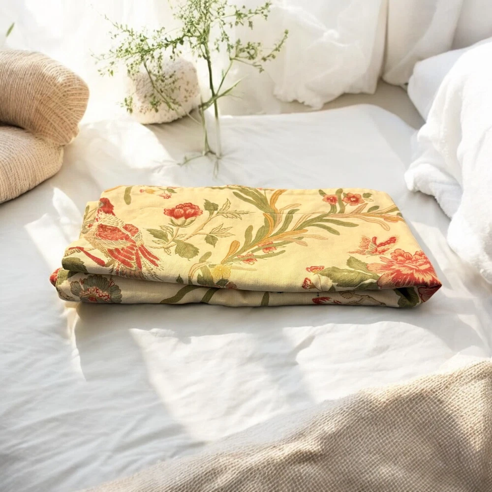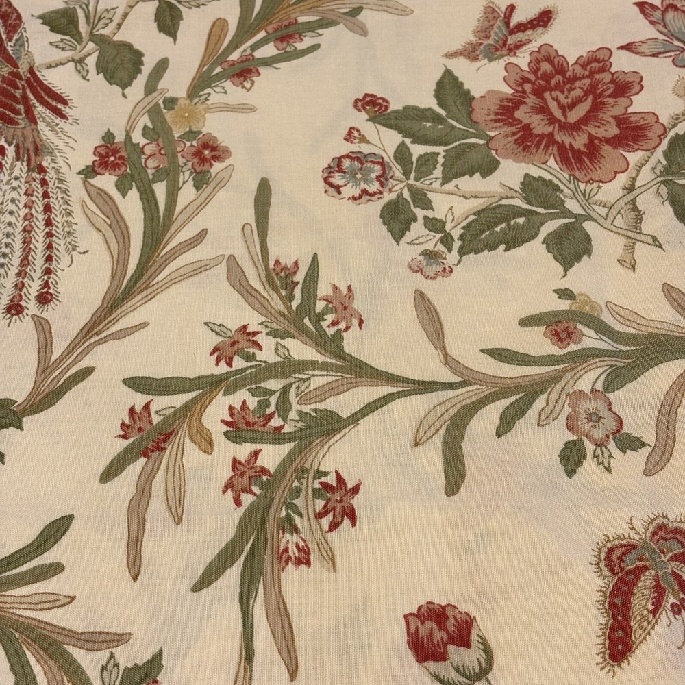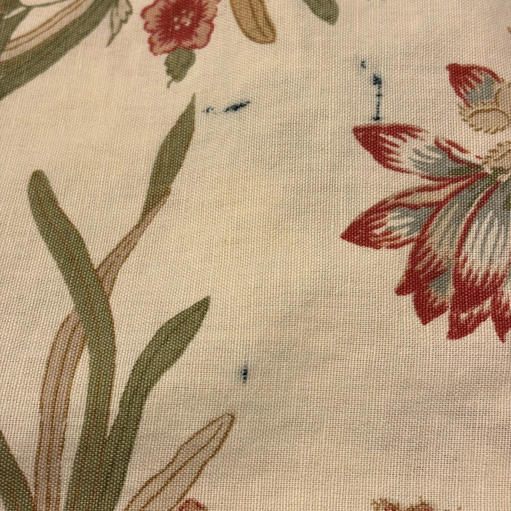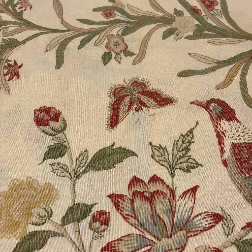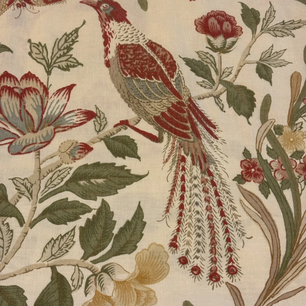 Butterflies Flowers- Green Red Yellow Gold- Display Pillow 21”x 20” Pillow Not Included- See Last Picture for Stain. This is a Pottery Barn Pillow Sham in a Tropical Exotic Birds pattern, made of a Cotton Linen blend. It is a Standard size measuring 29" in length and 27" in width, suitable for a bedroom with a Tropical theme. The multicolor design adds vibrancy to the room, perfect for those looking to incorporate a touch of nature into their decor.