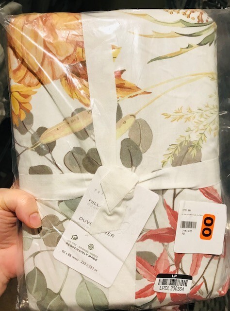 POTTERY BARN LAUREL DUVET Inspired by our favorite fall botanicals, our in-house artists designed this look to bring the seasons to life in your home. Each piece reverses to a contrasting floral design that's perfect for dressing up a guest room or updating your current bed spread. Woven of 100% cotton percale. Duvet features a button closure with inner ties that keep insert in place; sham features an overlap closure. Reverses to a coordinating pattern. Machine wash. Imported. Auct ion is for QUEEN duvet, with TWO STANDARD SHAMS. Item is BRAND NEW in ORIGINAL PACKAGING! A d d i T i O N a l P h o T O s A v a i L a B Le U p O n R e Q u e S T PURCHASED DIRECTLY FROM POTTERY BARN. AUTHENTIC.