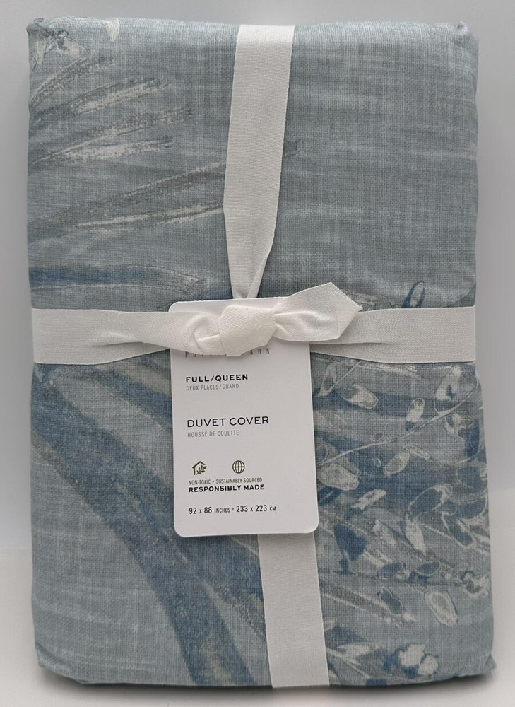 Pottery Barn Layla Palm FULL / QUEEN Duvet Cover ~ Blue Details: Made from 100% cotton. Inserts sold separately. Machine wash. Imported. Size: Duvet Cover: Full / Queen: 88" l x 92" w Care: Machine wash cold; gentle cycle. Use only non-chlorine bleach if needed. Tumble dry low; remove promptly. Warm iron as needed. Please read before you purchase: We take pride in our business, and we strive to do our best. We purchase brand new items or gently used items and we do our best to give accurate descriptions and photos. Pictures in the listing are of the actual item for sale. If you have any questions about an item, please contact us through eBay before you purchase. We try our best to resolve any issues as fast as possible. Please contact us right away if there are any issues with your purchase. We understand that colors may show up differently on different computers or devices. If you receive the item that doesn’t match your color scheme or décor, please feel free to return the item. If this is the case, please select Doesn’t Fit or Just Didn’t Like It as the reason for the return. If you select the reason Item Not As Described for a color issue, we will report you to eBay for resolution. Returns are accepted but the item must be returned within 30 days of the original delivery date. When we receive the returned item, inspect it, and it is found to be in the same condition that we shipped it in (brand new, unused, in the original packaging with tag attached) then we will provide a refund. Refunds are less original cost to ship the product. Returns that have any signs of use or handling will be reported to eBay; in these cases a partial refund may be given. Please see eBay’s return policies for more information. Thank you! Feedback: We strive to give you the best service. If you have any issues regarding your item, please contact us right away. Customer satisfaction is our priority. See my other listings for more great items! We accept MasterCard, Visa, Discover and American Express, PayPal through eBay's managed payment service. We can only ship to confirmed addresses provided at the time of sale ...so please make sure it is correct. We cannot modify the address after you have purchased the item. We provide fast shipping! Your item will be shipped within 2-5 business days via UPS Ground or USPS priority mail. UPS can NOT deliver to PO boxes, so please provide us with a physical street address. Once your item is shipped you will receive an email with your tracking number. We are HAPPY to combine shipping on items that can be combined. We cannot offer Flat Rate or Free Shipping to HI, PR and AK. Please email us for shipping rates to HI, PR and AK. Signature at delivery may be required for some items over $250. International bidders: We do offer SOME of our auctions to international buyers. Shipping charges in the listing only cover the US shipping costs. Extra shipping charges are required for international destinations. The customer is also responsible for any customs charges incurred. We will NOT mark international packages as a GIFT....so please do not ask. Thank you! txzj pxzj131 txzj-11 txzj39 txzj115