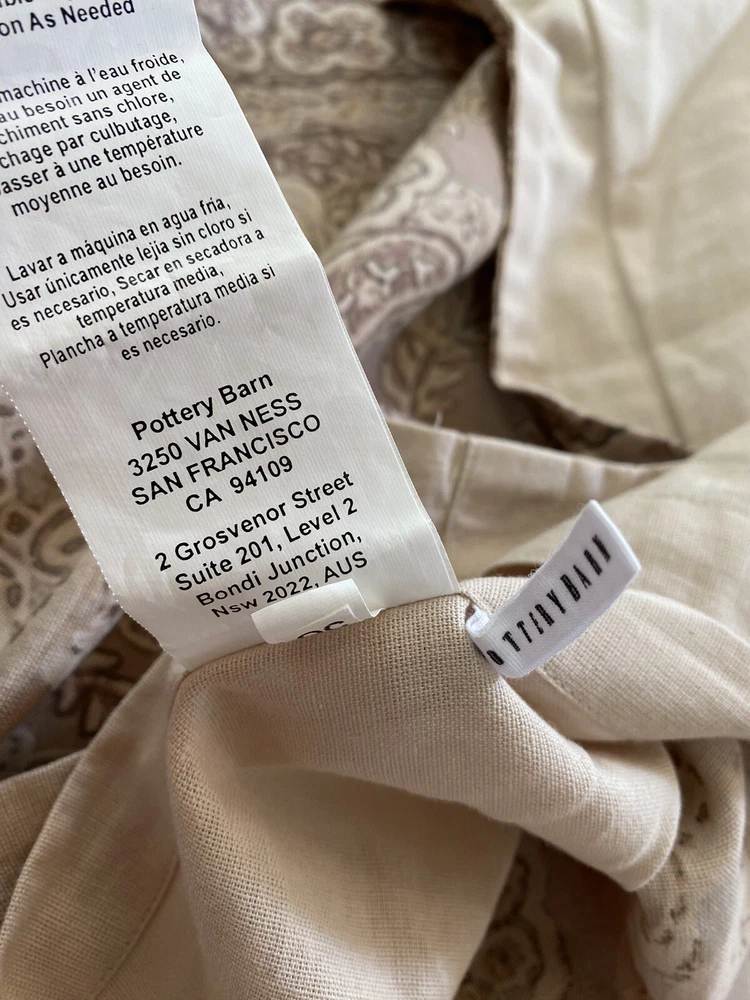 Pottery Barn Linen Blend FULL/QUEEN DUVET Cover Taupe, tan, beige paisley 88"L x 92"W 2 Std SHAMS 15% Linen, 85% Cotton EXCELLENT condition Shipping weight 5 lbs I pass my commercial shipping discount...