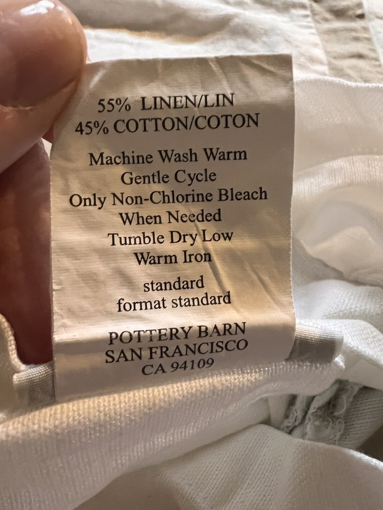Pottery Barn Pillow Sham Set of 2 White and Tan Linen Blend, Standard. Machine Wash. Great Condition. Thoughtfully Packaged Shipped USPS with tracking