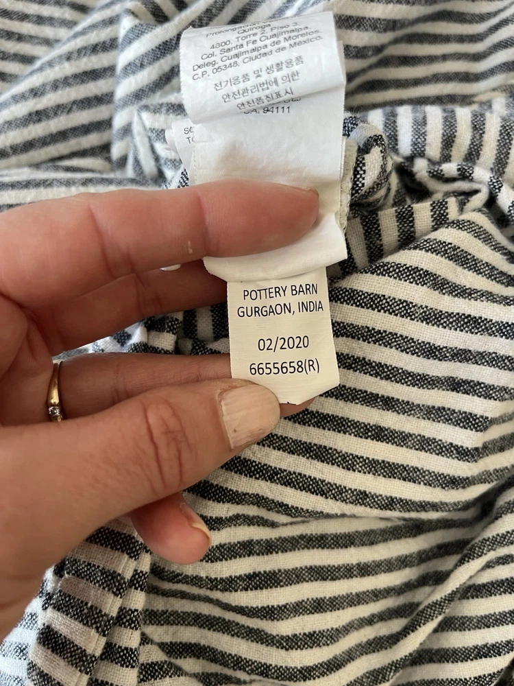 The Pottery Barn Linen Cotton King Duvet Cover in Grey Stripe is a luxurious addition to any bedroom. Made from high-quality linen, this rectangular duvet cover features a stylish gray stripe pattern and button closure. With a king size of 92" in length and 108" in width, this duvet cover is both stylish and comfortable, perfect for creating a cozy bedroom space. Easy to care for with machine washable instructions, this duvet cover is a versatile and elegant choice for any bedroom decor.