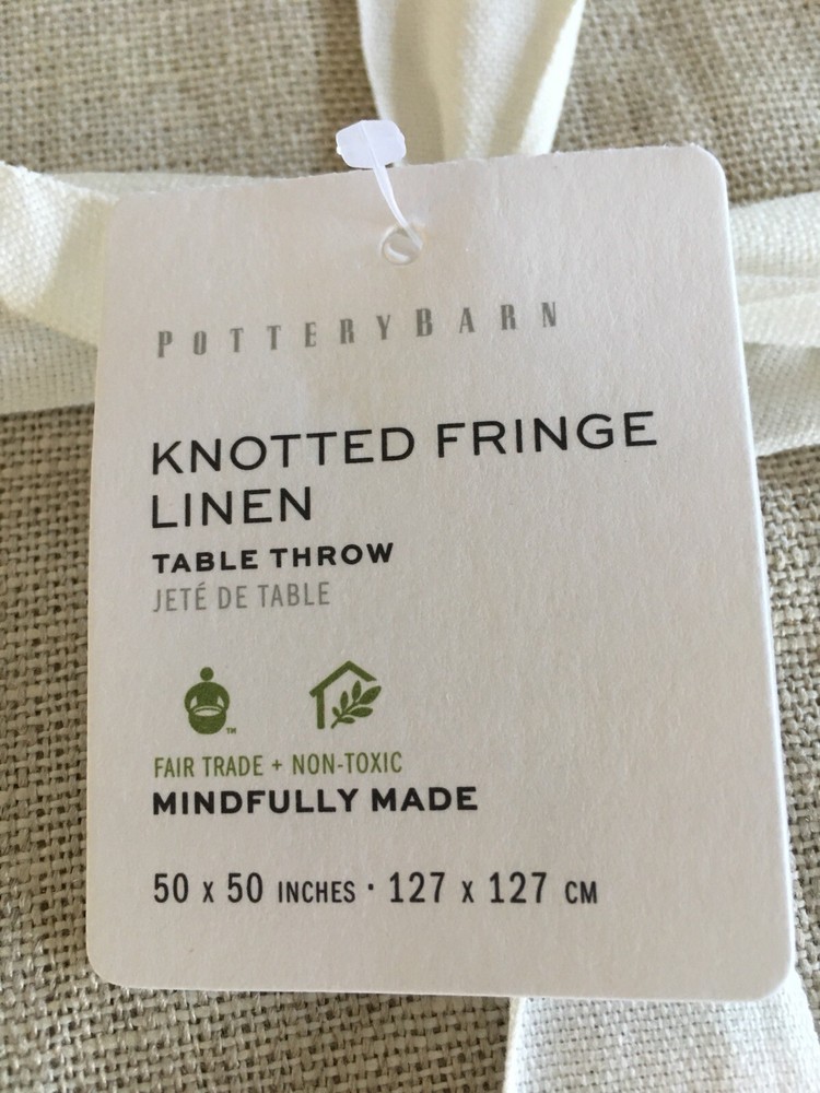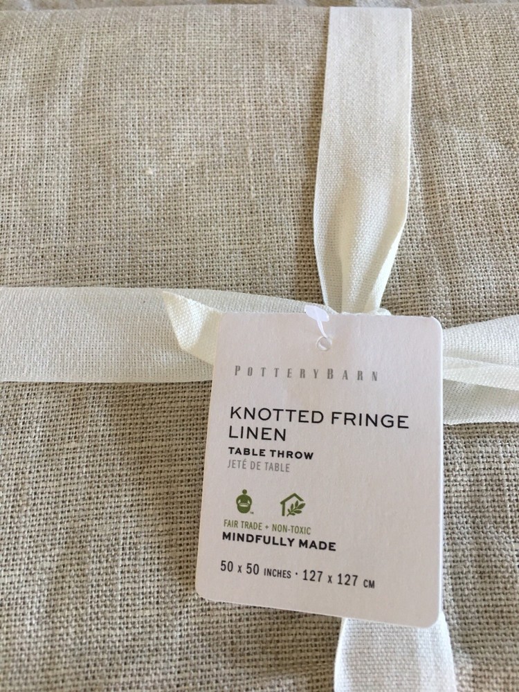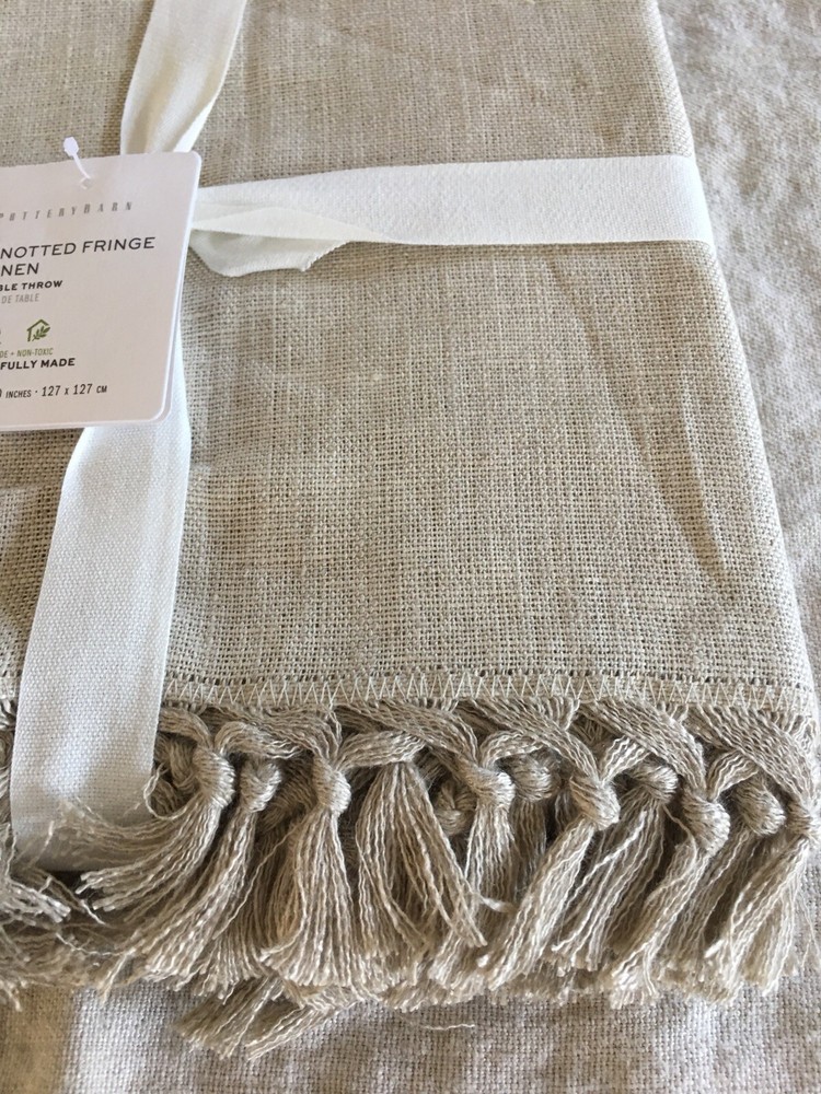 Pottery Barn Fringe linen Knotted Table Throw 50 x 50 Flax Absolutely Gorgeous!! New with tags. Shipped with USPS Priority Mail