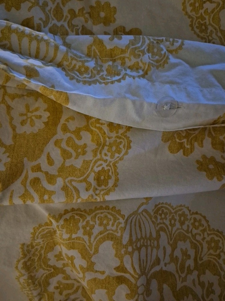 The Pottery Barn Linen/Cotton Matine Toile Duvet Cover in Yellow is a stylish and elegant addition to any bedroom. Made of a comfortable blend of linen and cotton, this duvet cover features a classic toile pattern that adds a touch of French country charm. Its button closure and machine wash/tumble dry care instructions make it easy to keep clean and crisp. The full/queen size is perfect for a standard bed, and the duvet cover set includes everything you need to transform your space with a touch of sophistication. PRE-OWNED VERY GENTLY USED EXCELLENT CONDITION NO FLAWS