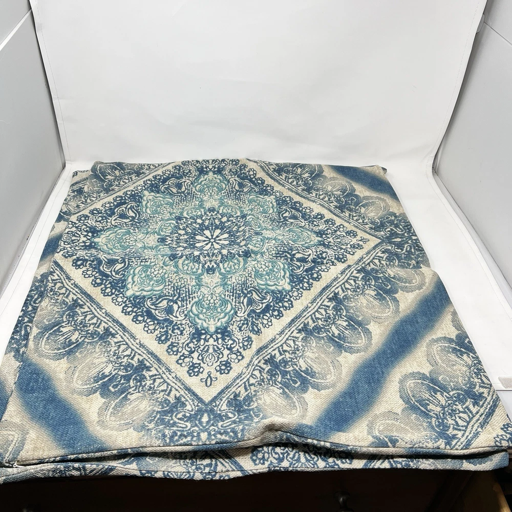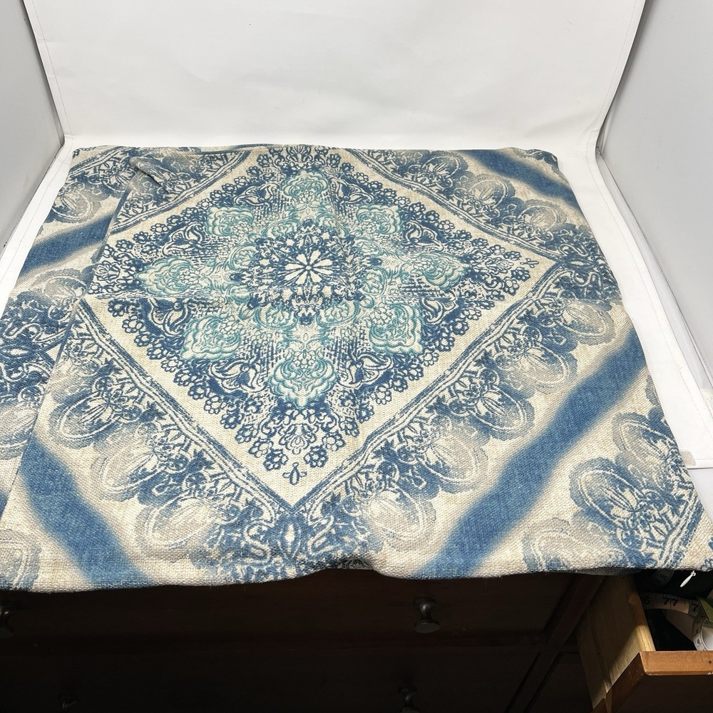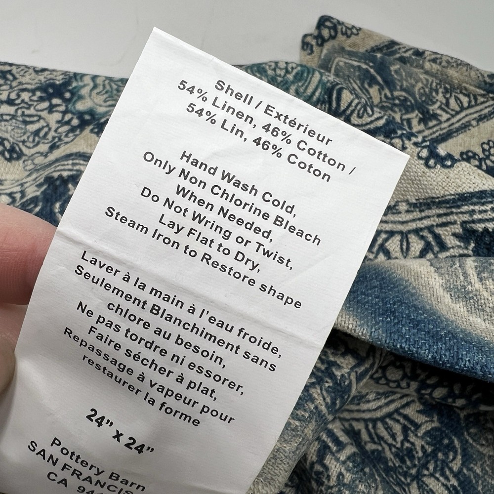 Pottery Barn Linen Cotton Blend Blue Beige Floral Throw Pillow Cover Case 24x24” Lot of 2 Excellent preowned condition No flaws