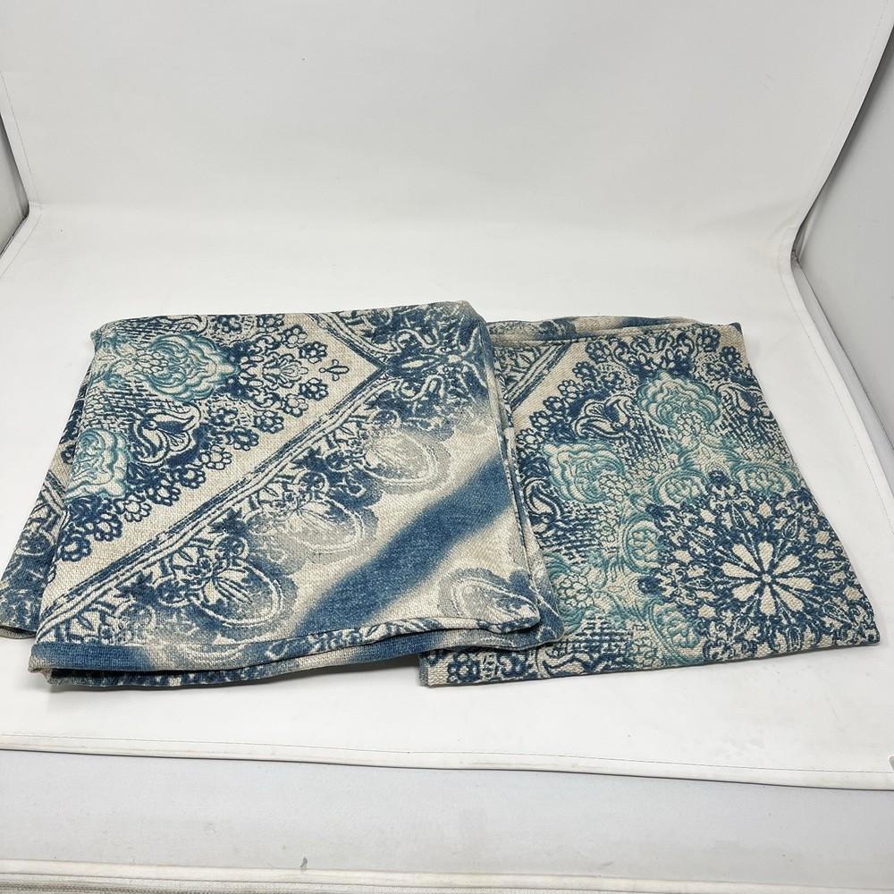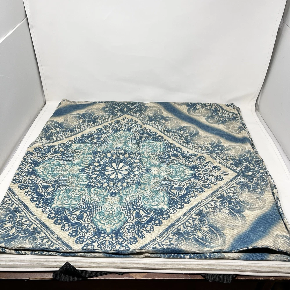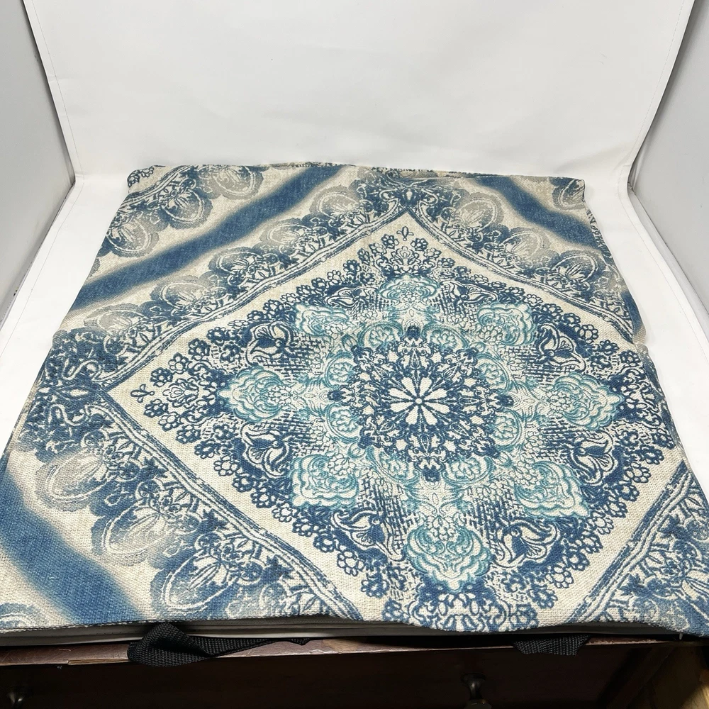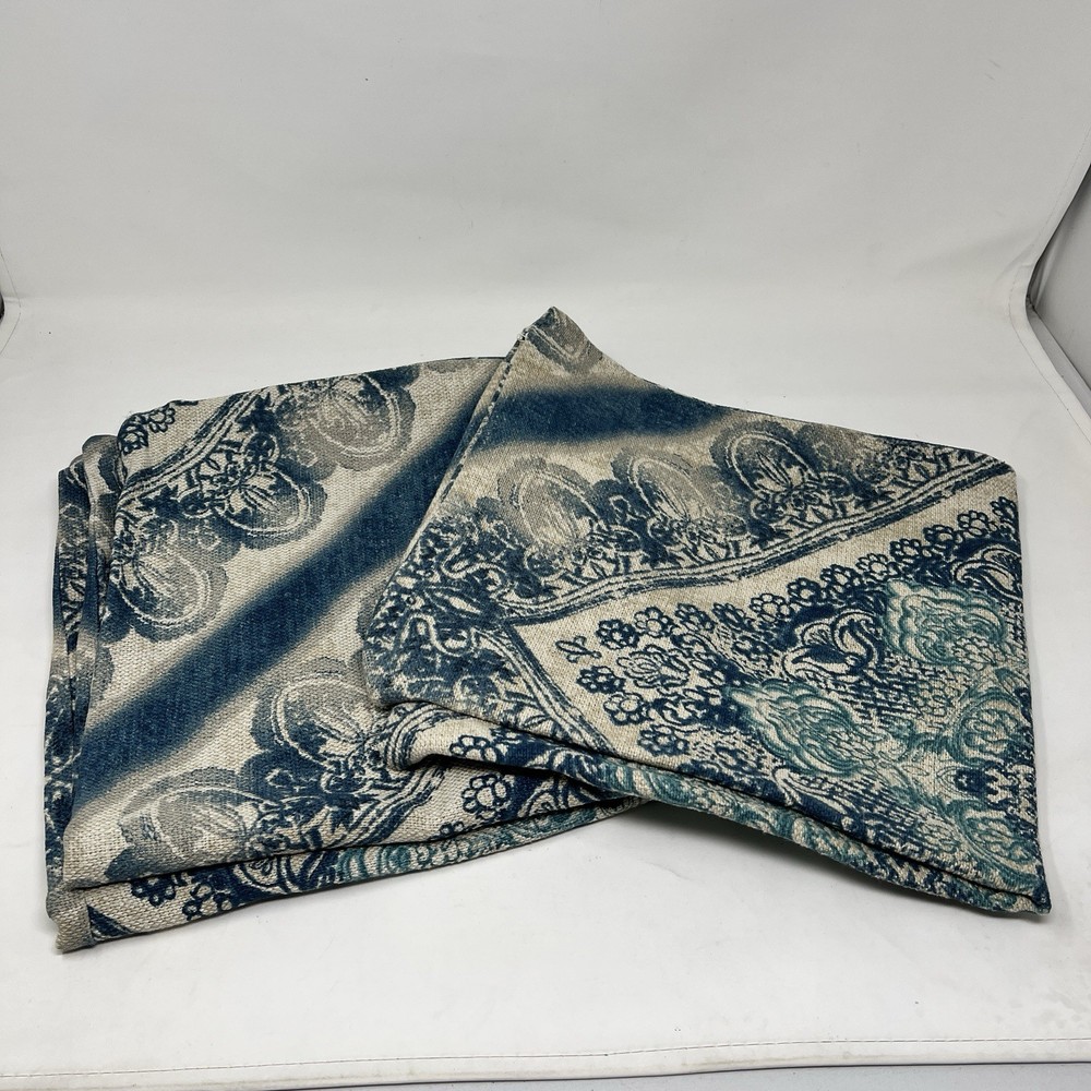 Pottery Barn Linen Cotton Blend Blue Beige Floral Throw Pillow Cover Case 24x24” Lot of 2 Excellent preowned condition No flaws