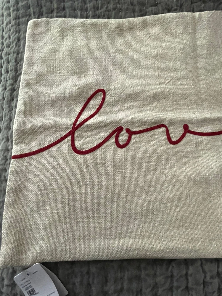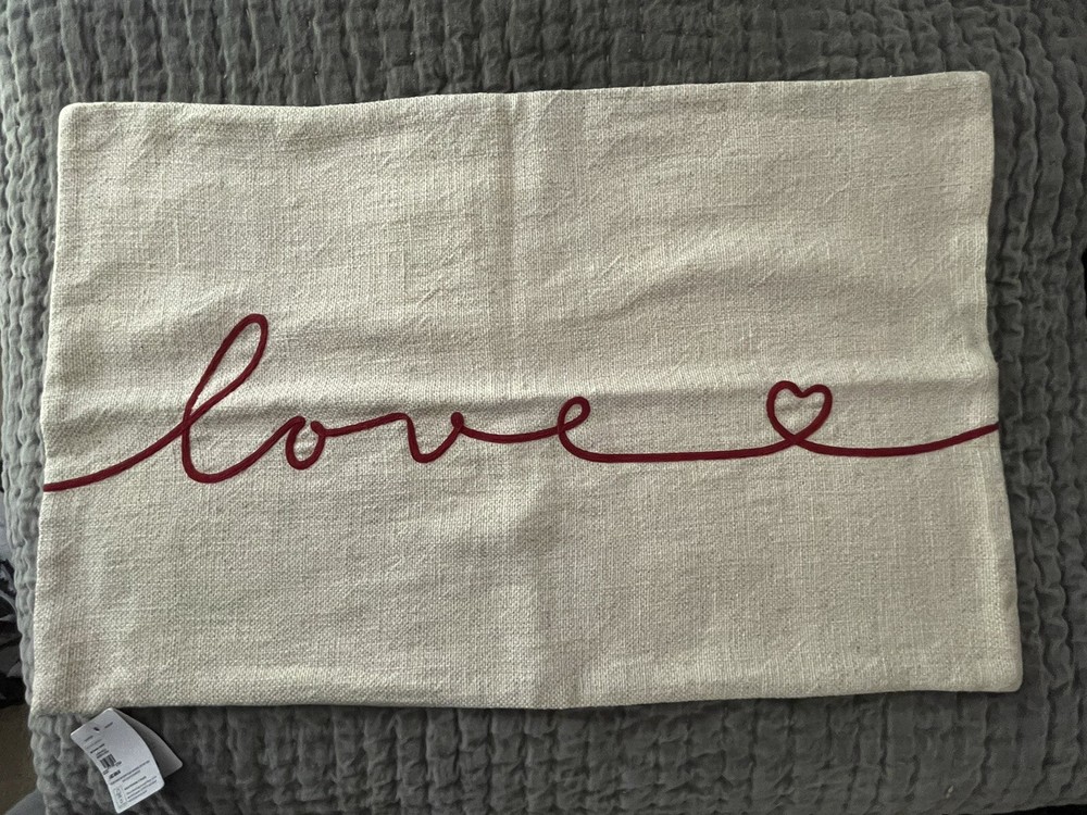 Made from 70% cotton and 30% linen, reverses to 100% cotton. Zipper closure. Accommodates 26" x 16" insert. Express yourself with this message of love in swirling script. It’s the perfect accent to sh...