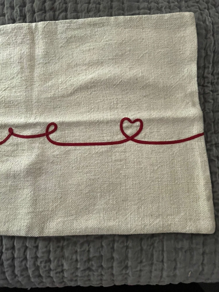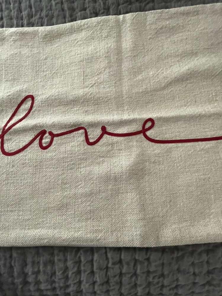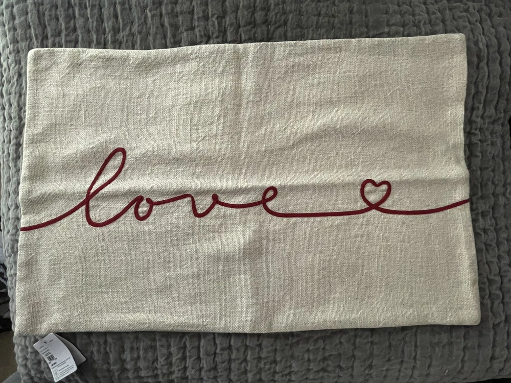 Made from 70% cotton and 30% linen, reverses to 100% cotton. Zipper closure. Accommodates 26" x 16" insert. Express yourself with this message of love in swirling script. It’s the perfect accent to show how much you care.